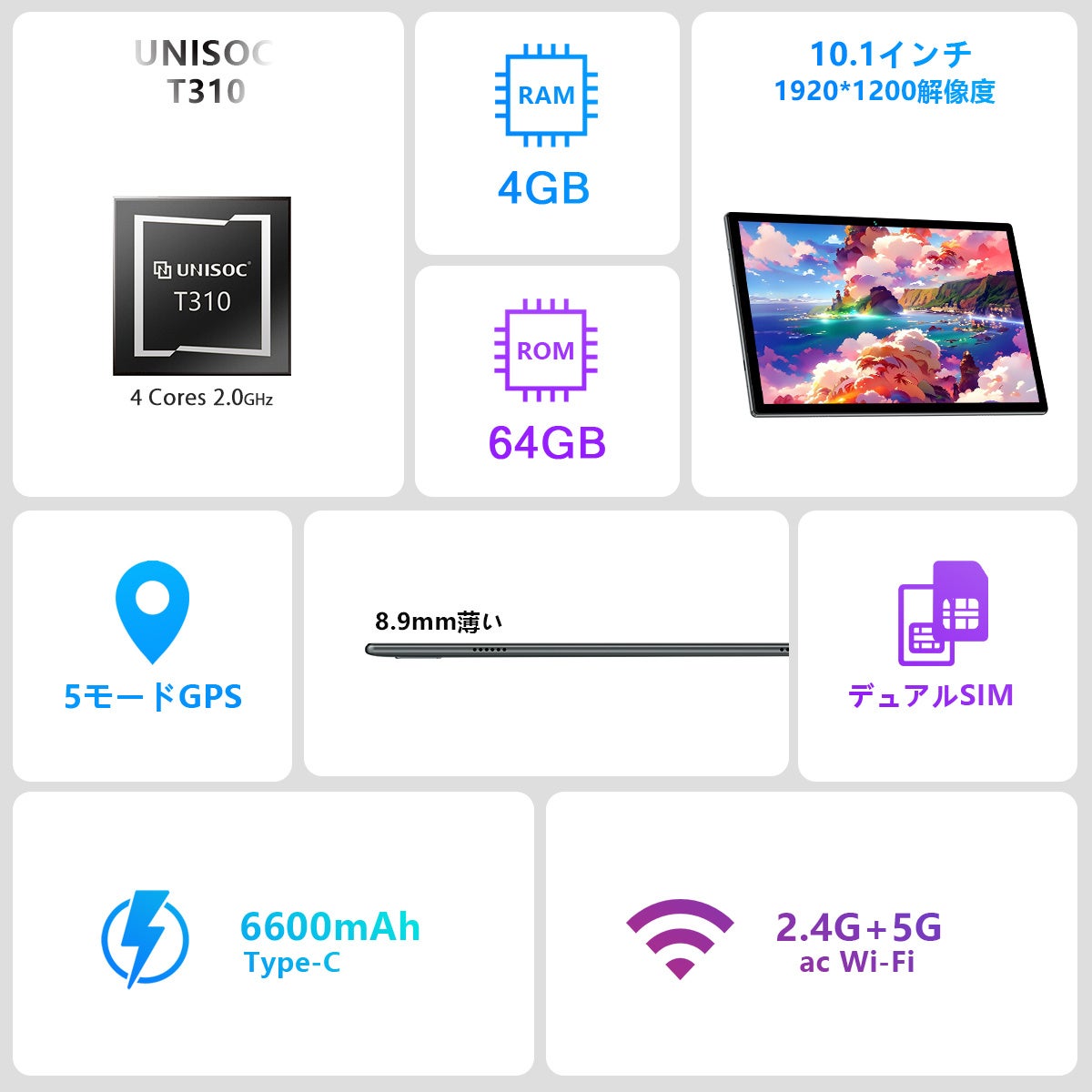 高性能Unisoc T310を搭載して、4コアCPUで 周波数2.0Ghz対応する。
