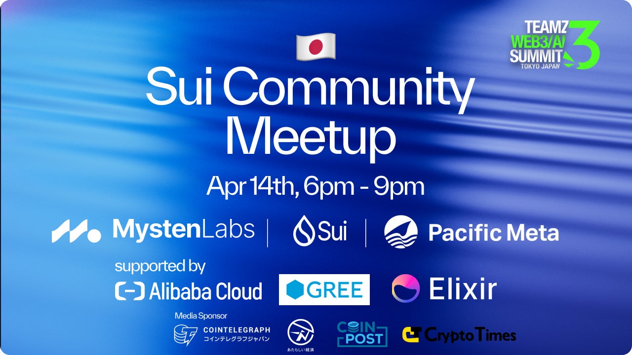 株式会社Pacific Meta(所在地:東京都港区、代表取締役:岩崎翔太、以下「Pacific Meta」)は、株式会社TEAMZ主催「TEAMZ WEB3 / AI SUMMIT」において、サイドイベント「Sui Japan Community Meetup Powered by Pacific Meta」を主催することをご報告いたします。