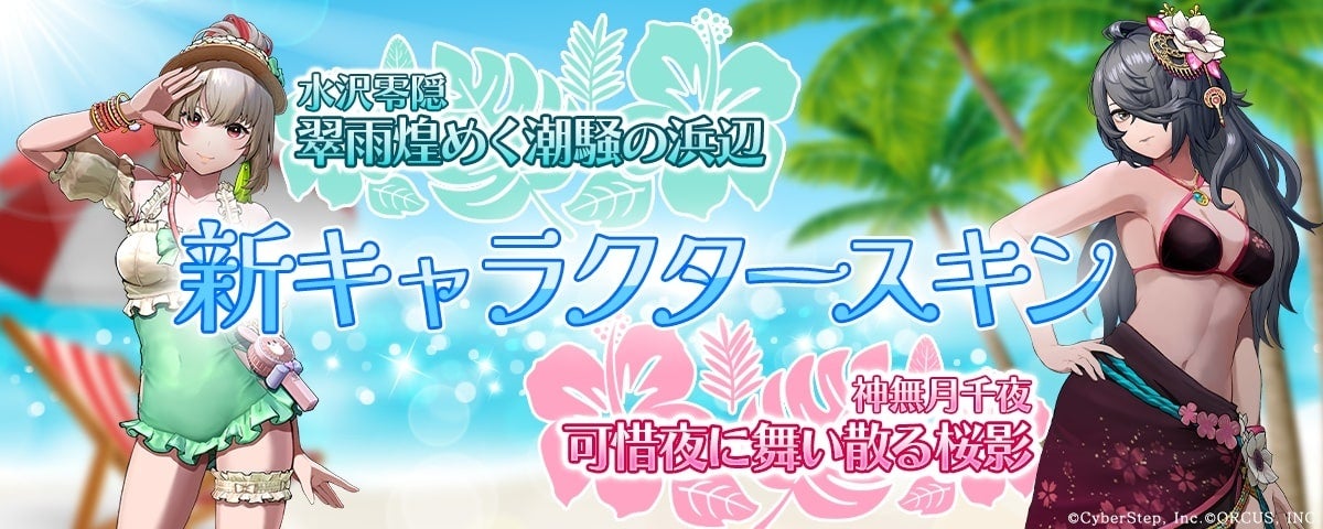 2024年8月8日(木)メンテナンス後より、水沢零隠と神無月千夜の水着姿のスキンを販売します。