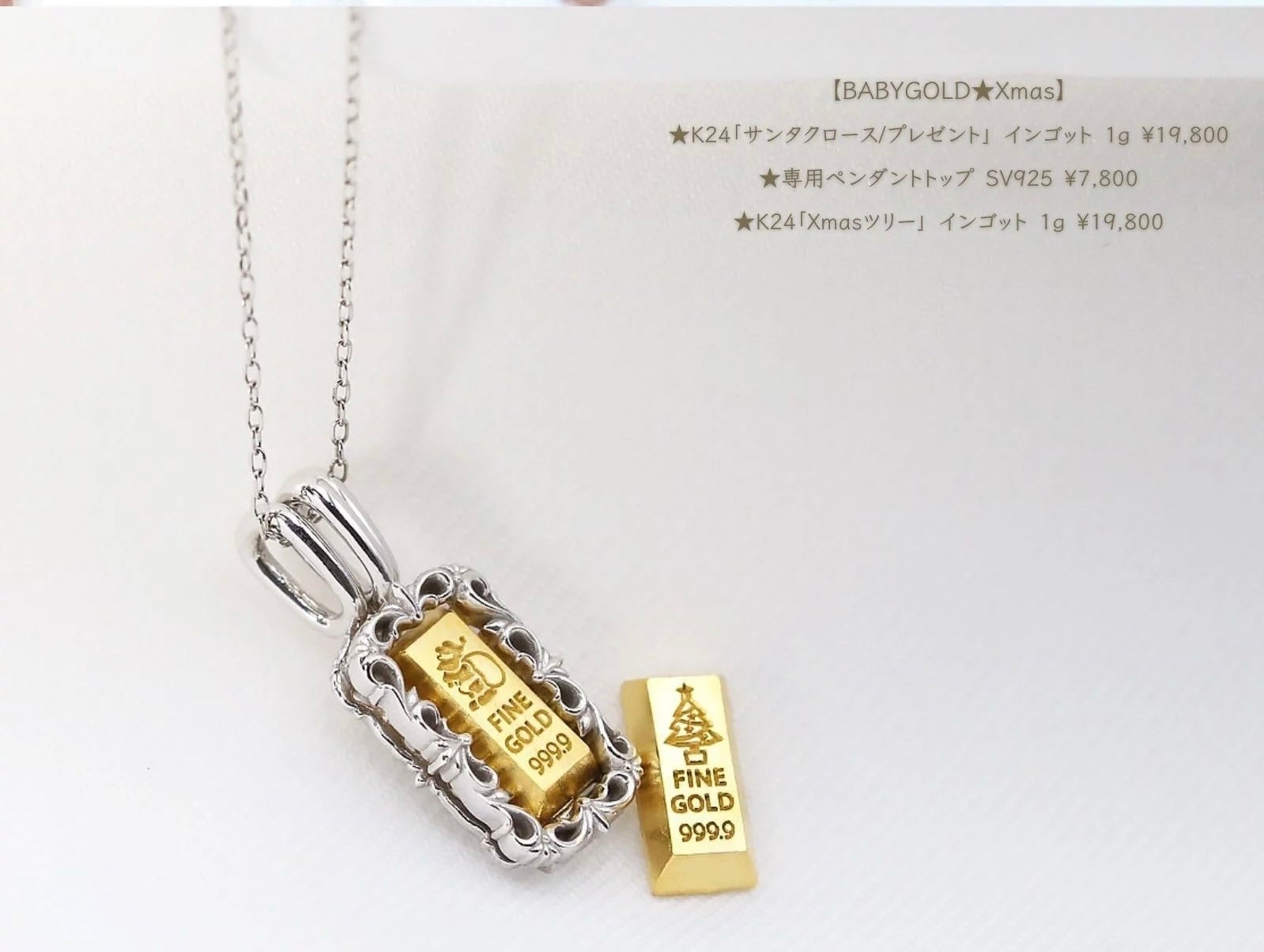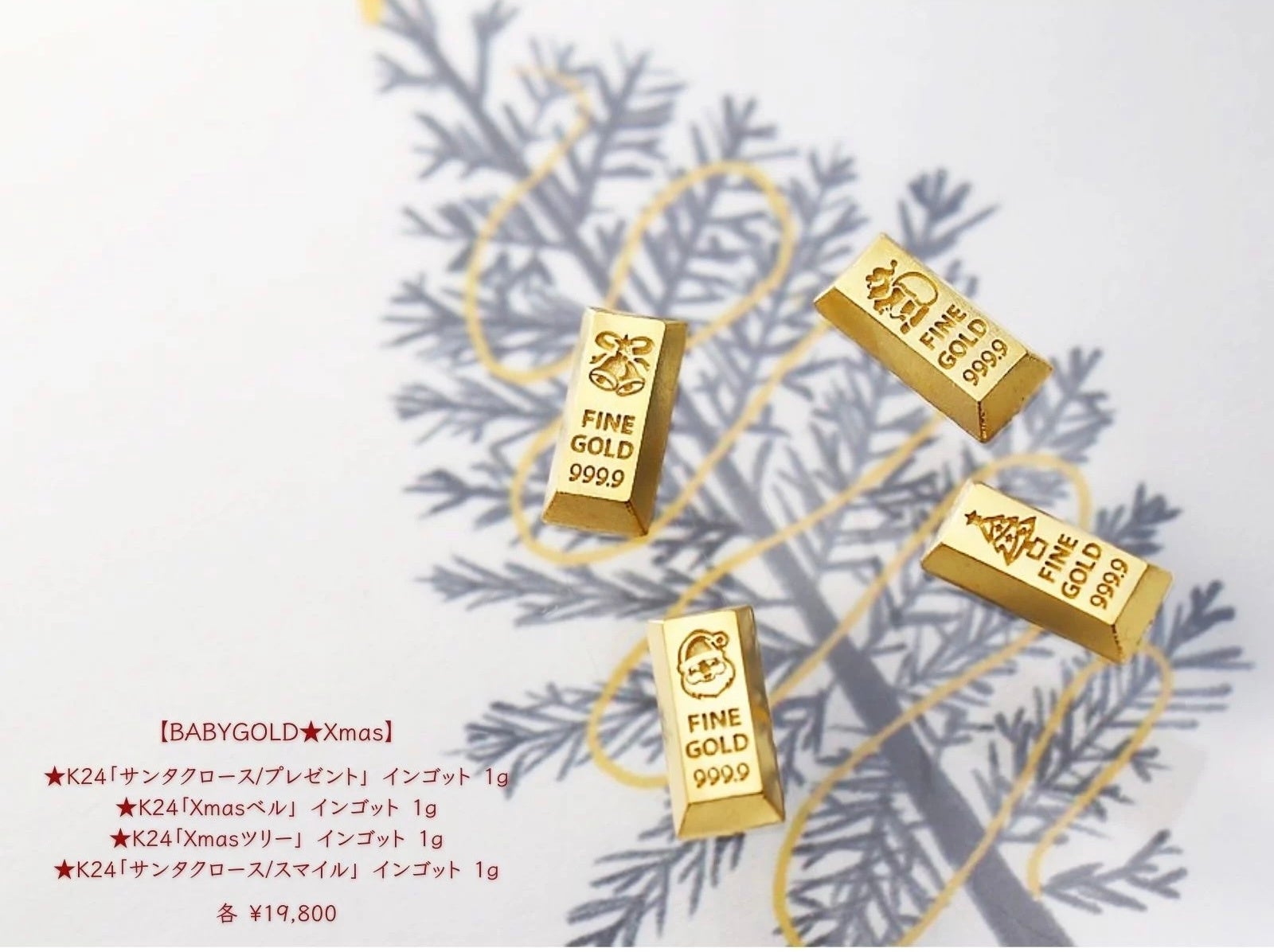 1gのかわいい純金「BABYGOLD」Xmasコレクション、クリスマスまでにお届けします!