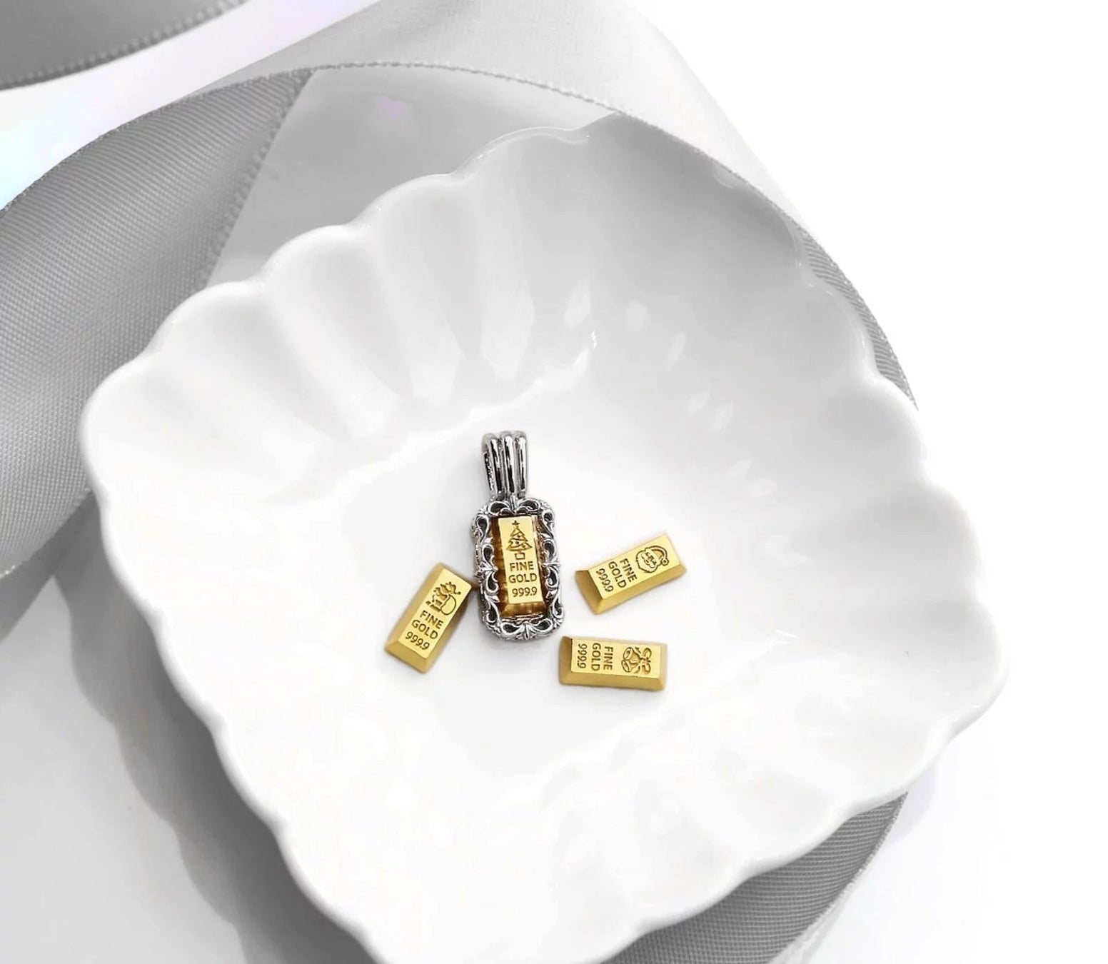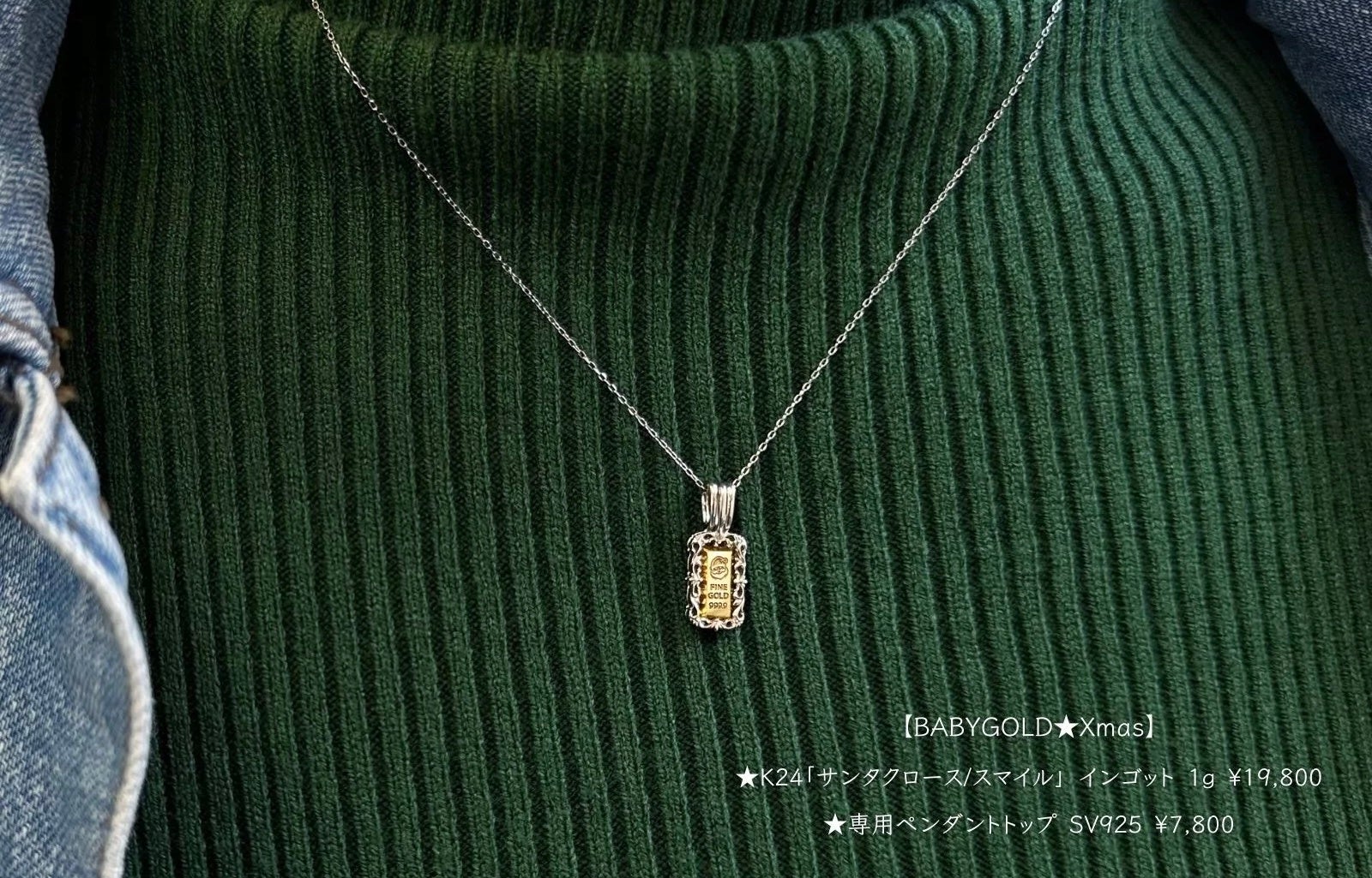 BABYGOLDを入れてジュエリーとして身に着ける事が出来ます。クリスマスの装いを彩るジュエリーとしていかがでしょうか?