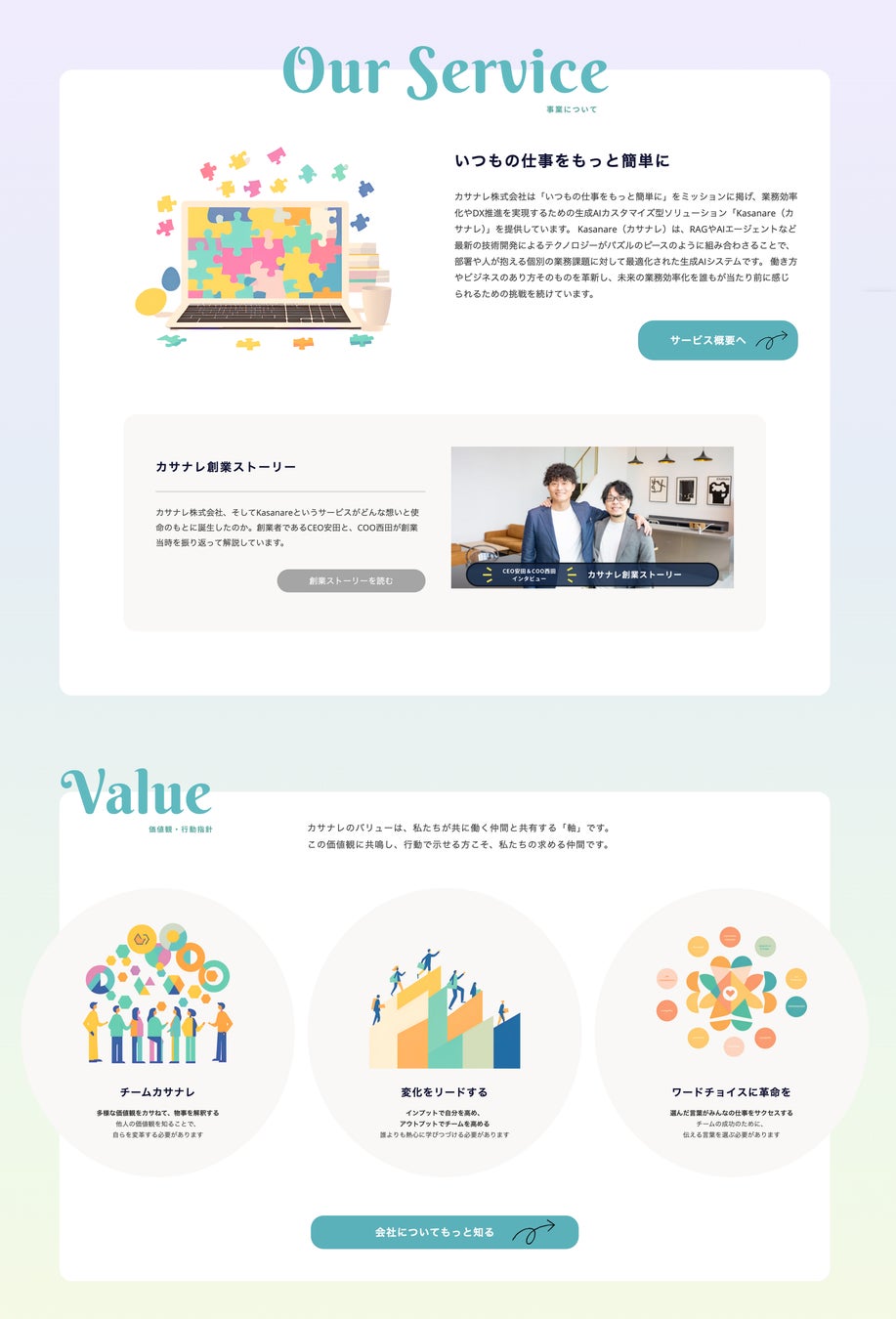 このような背景から、当社のビジョンや価値観をより明確に伝え、私たちと共に挑戦したいと思える人材と出会うためのプラットフォームとして、採用ページを新設いたしました。このページを通じて、カサナレの目指す方向性を理解し共感していただける方々との出会いを創出し、次なるステージへと進んでまいります。