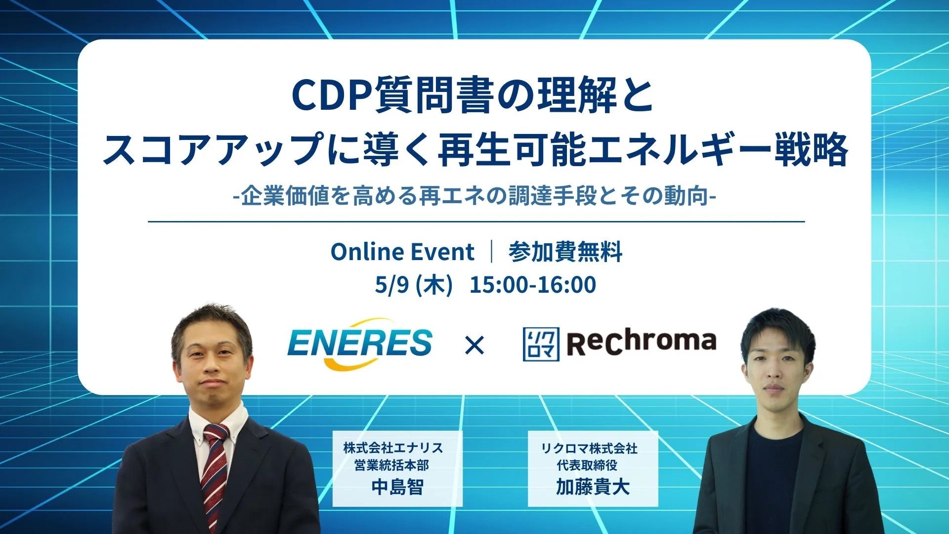 【5月9日 リクロマ×エナリス共催】CDP質問書の理解とスコアアップに導く再生可能エネルギー戦略について解説