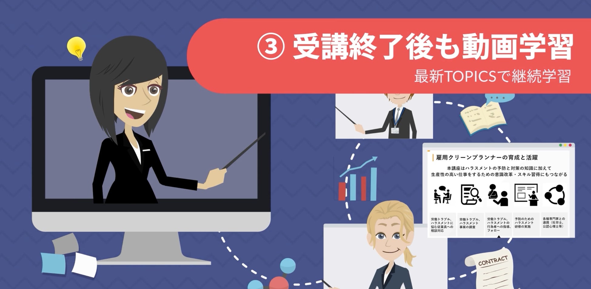 受講終了後も、最新TOPICSも動画で継続学習できる