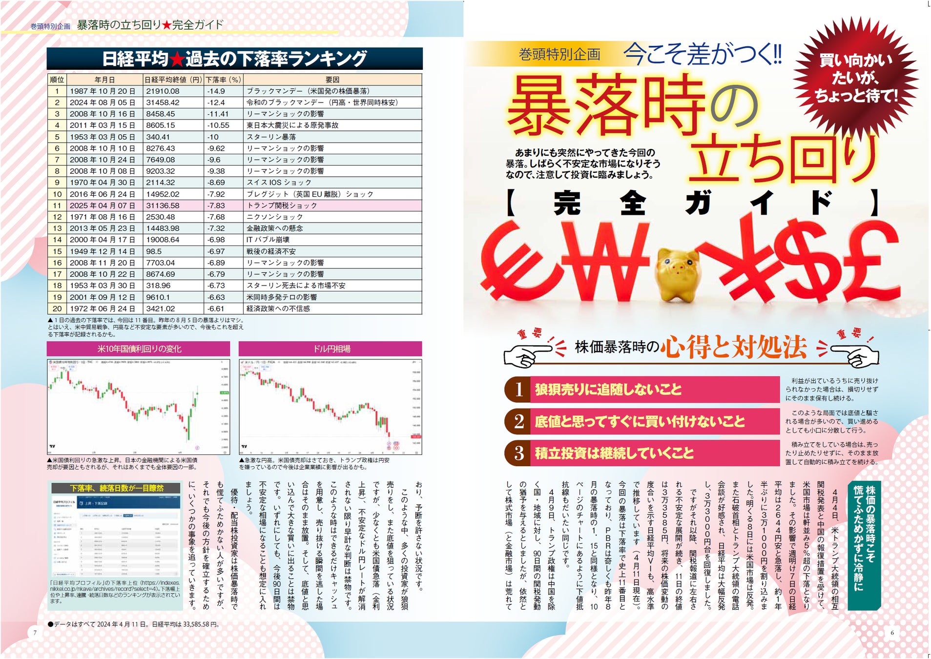 巻頭は、最新の優待銘柄特集と、暴落時の正しい対処の仕方。トランプ関税ショックで、投資家はどう立ち回ればいいかを急遽特集いたしました。これを読めば、株価下落時の正しい行動がわかります。