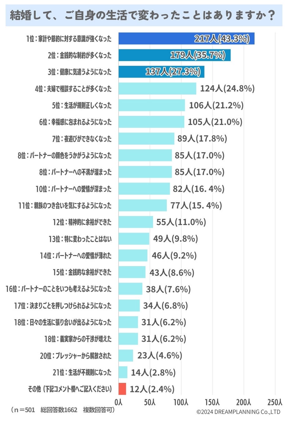 ★ 4位:夫婦で相談することが多くなった 124/501名(24.8%) ★