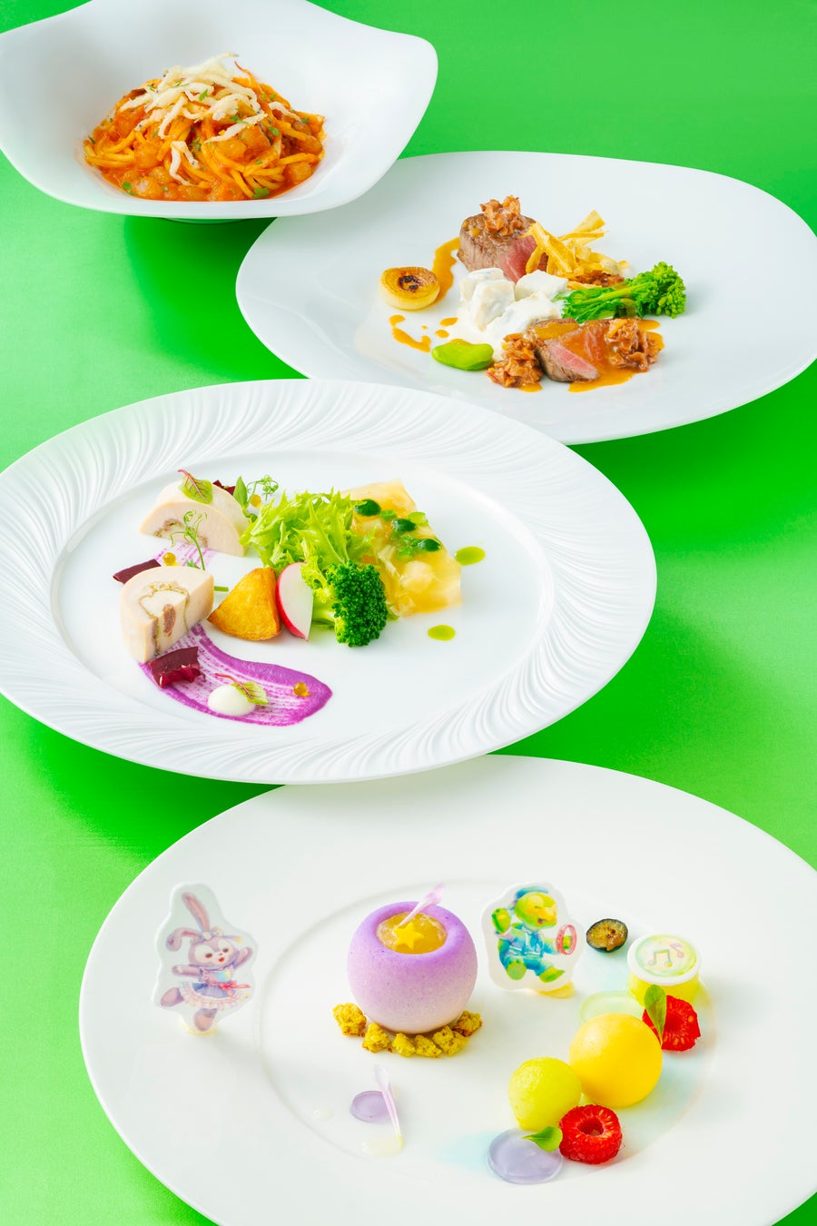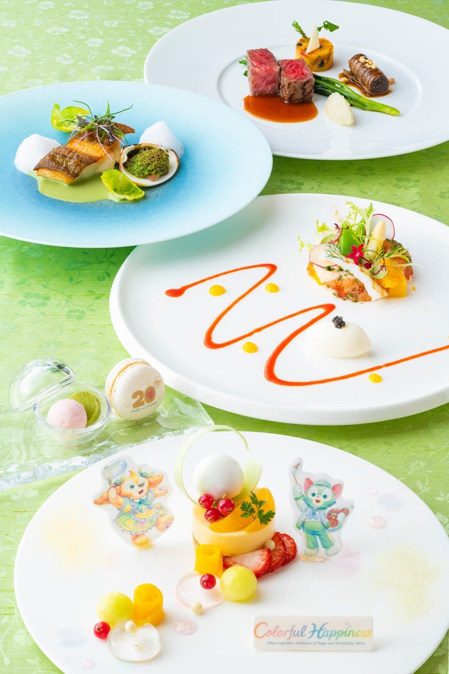 東京ディズニーシー・ホテルミラコスタ®の3つのレストランでは、4月8日(火)から7月2日(水)までの間、ダッフィー&フレンズとシャボン玉のモチーフや、カラフルな色彩で20周年を表現したスペシャルメニューを提供します。祝祭感あふれる華やかなお料理をはじめ、各店舗ではスペシャルドリンクをご用意し、楽しいお食事の時間を彩ります。ディズニーホテルでも、ダッフィー&フレンズの20周年をお楽しみください。