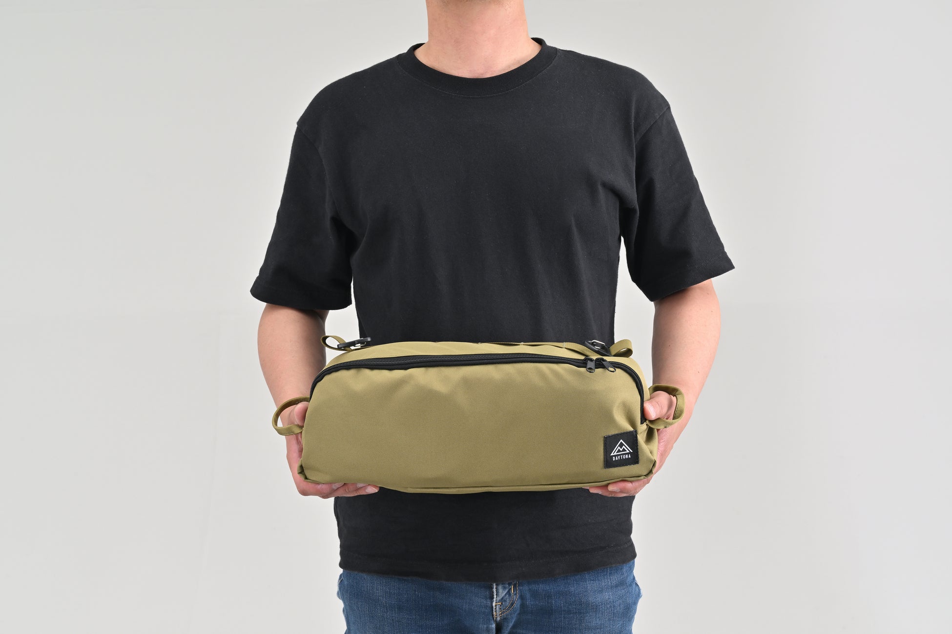 収納バッグには、外側にパルステープとカラビナが装備されています。収納バッグをチェアの足元に取り付けて小物用ポケットとして使ったり、シートバッグなどにしっかり固定して持ち運ぶことができます。