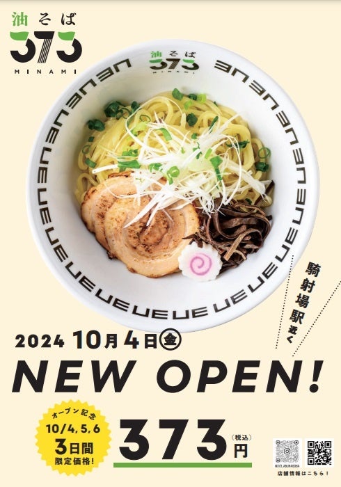 ECサポート支援などを行うLR株式会社(本社:鹿児島県日置市、代表:末永祐馬)は、2024年10月4日(金)、鹿児島市の騎射場エリアに油そば店「373」をオープンします。