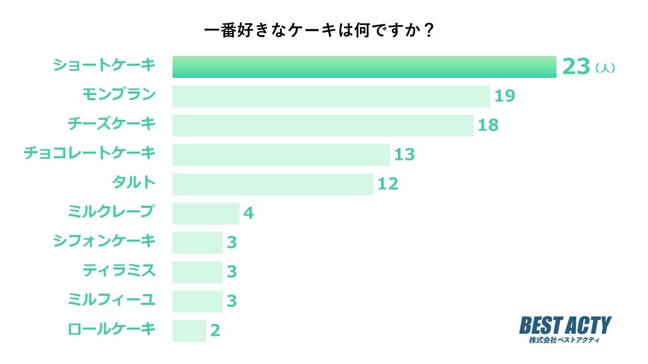 アンケートの結果、「ショートケーキ」と答える人が最も多い結果となりました。