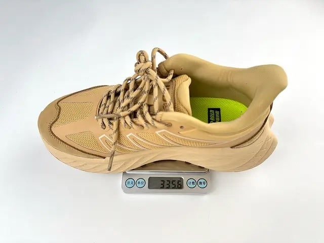 ② 片足わずか335g。クッション性が高くて柔らかい厚底ソールで外出&散歩が楽しくなる一足