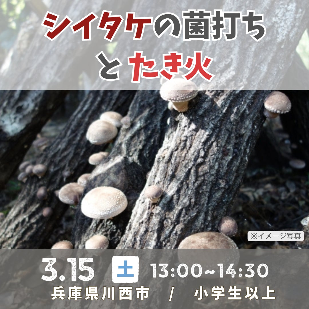 シイタケの菌打ちとたき火<兵庫県川西市>