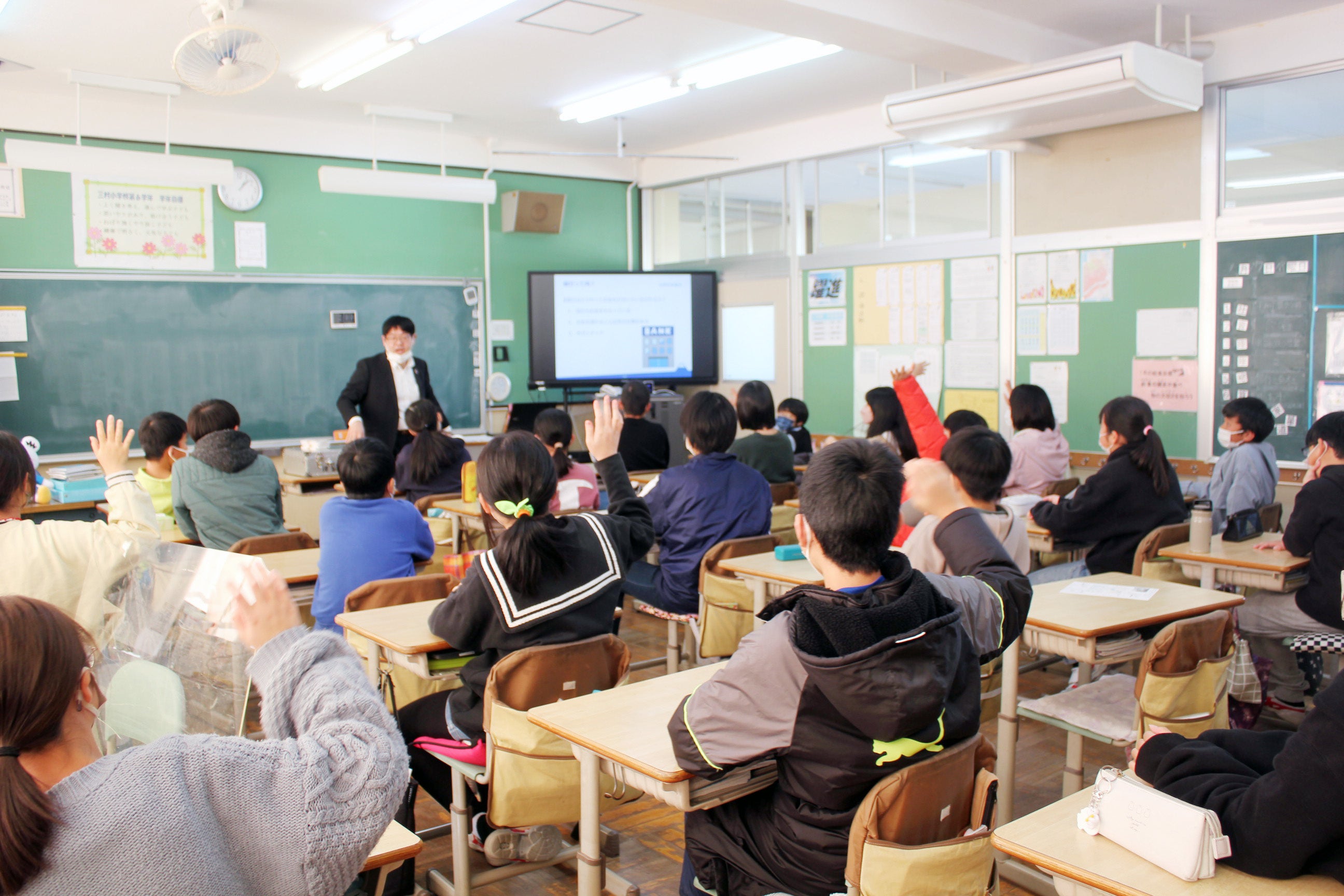 株式会社山梨中央銀行(頭取 古屋 賀章)は1月17日(水)、中央市立三村小学校において6年生の児童53名を対象に、マネースクール「銀行の仕事って何⁈」を実施いたしました。