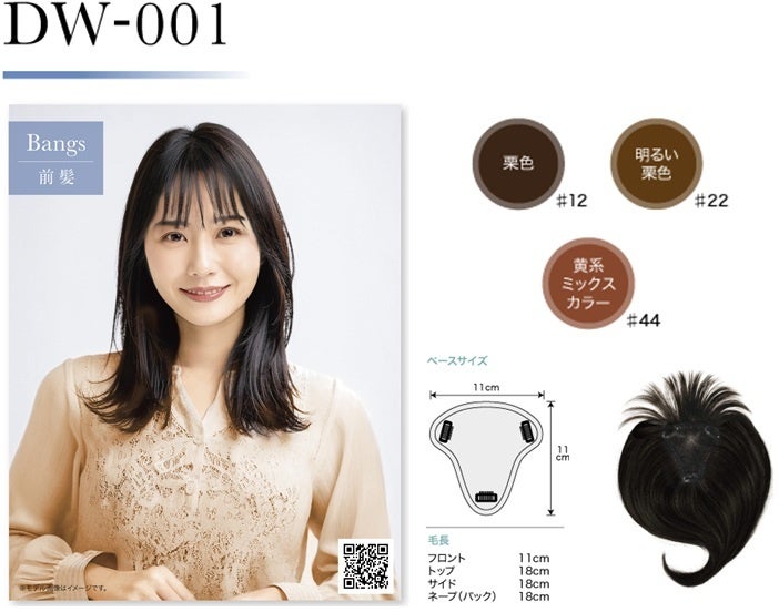 ラインナップは、表情を彩る顔まわりのスタイルをアレンジできる 前髪ウィッグ「DW-001」と、自然になじむカラーでいつものスタイルにほどよい華やかさをプラスするハイライトウィッグ「DW-002」の2種類。