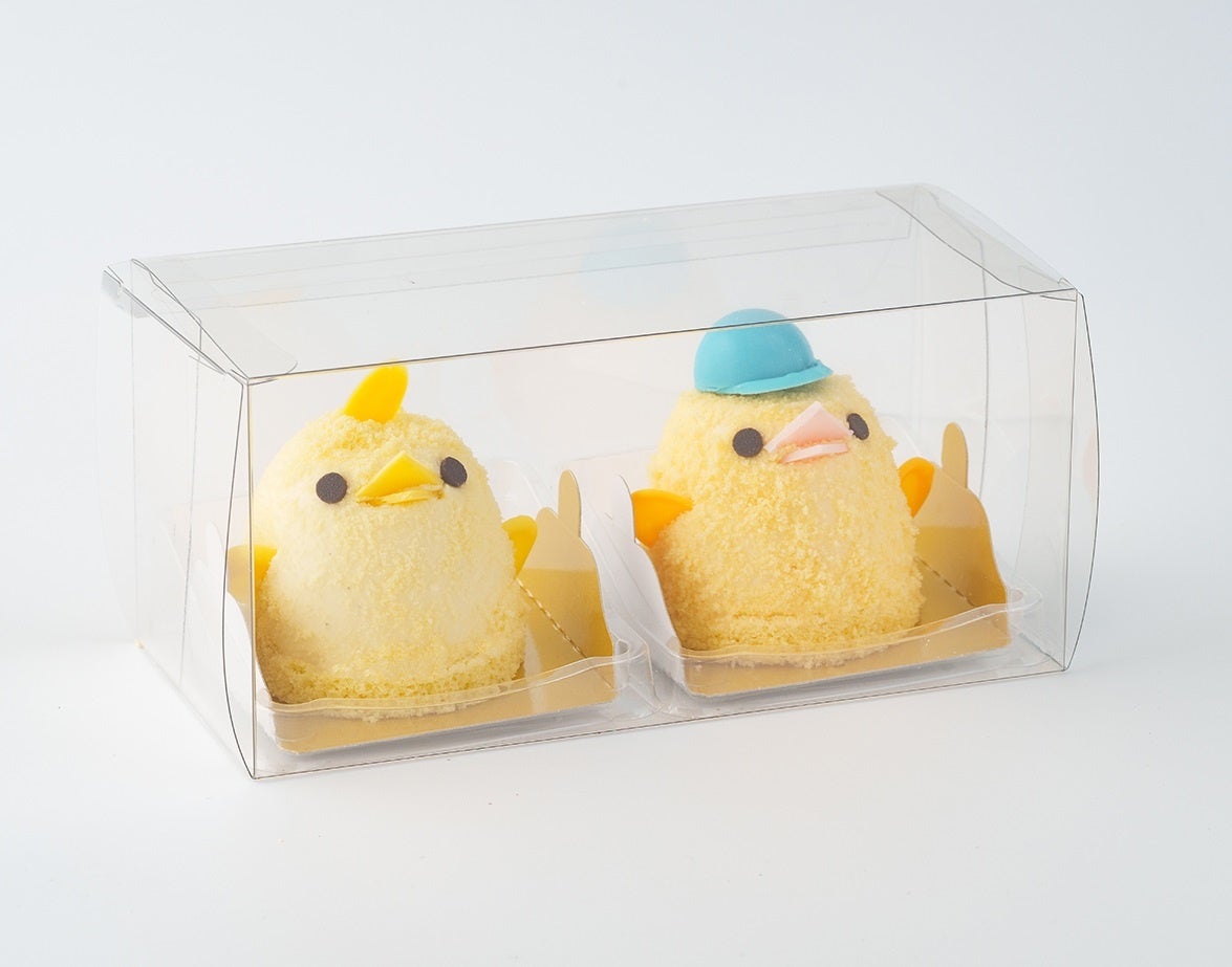 愛知県の地元食材「名古屋コーチン」の卵を使ったプリンを、バニラの香り豊かなババロアで包み込み、粉末状にしたスポンジをまとわせた、ふんわり「ひよこ」の形に飾り付けた生スイーツです。