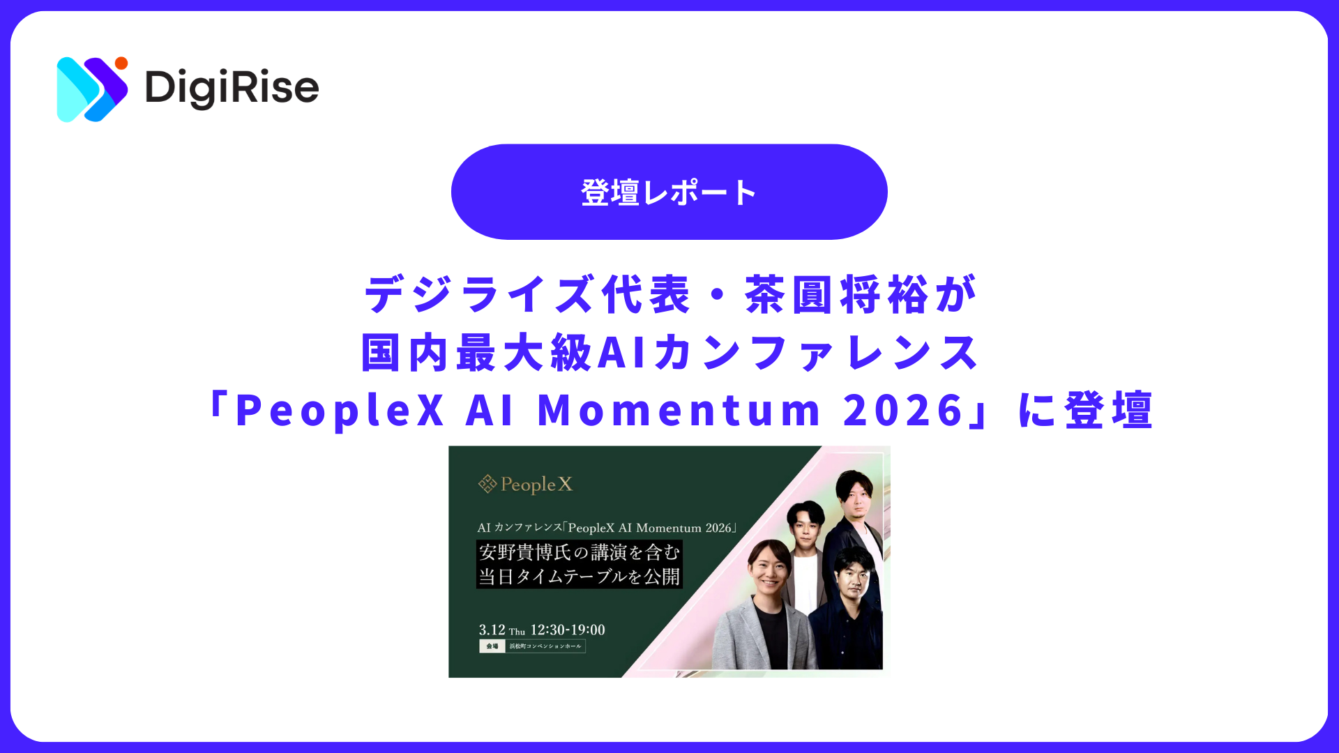 【デジライズ】デジライズ代表・茶圓将裕が国内最大級AIカンファレンス「PeopleX AI Momentum 2026」に登壇