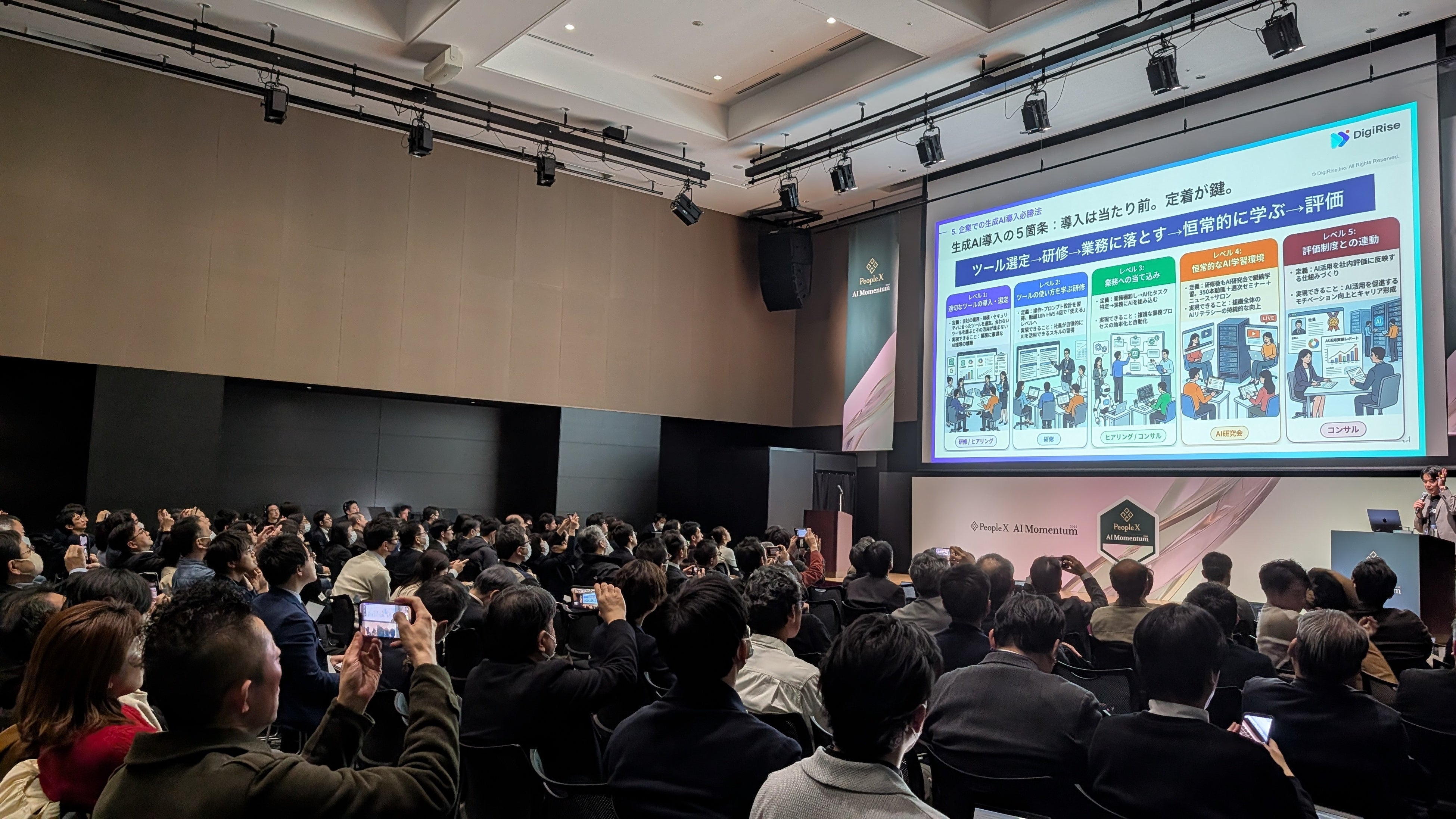 株式会社デジライズ(本社:東京都港区、代表取締役:茶圓将裕)は、2026年3月12日(木)に浜松町コンベンションホールにて開催された国内最大級のAIカンファレンス「PeopleX AI Momentum 2026」に登壇いたしました。参加者を前に、最新AIトレンドと新年度における実行戦略をテーマとした講演を行いました。