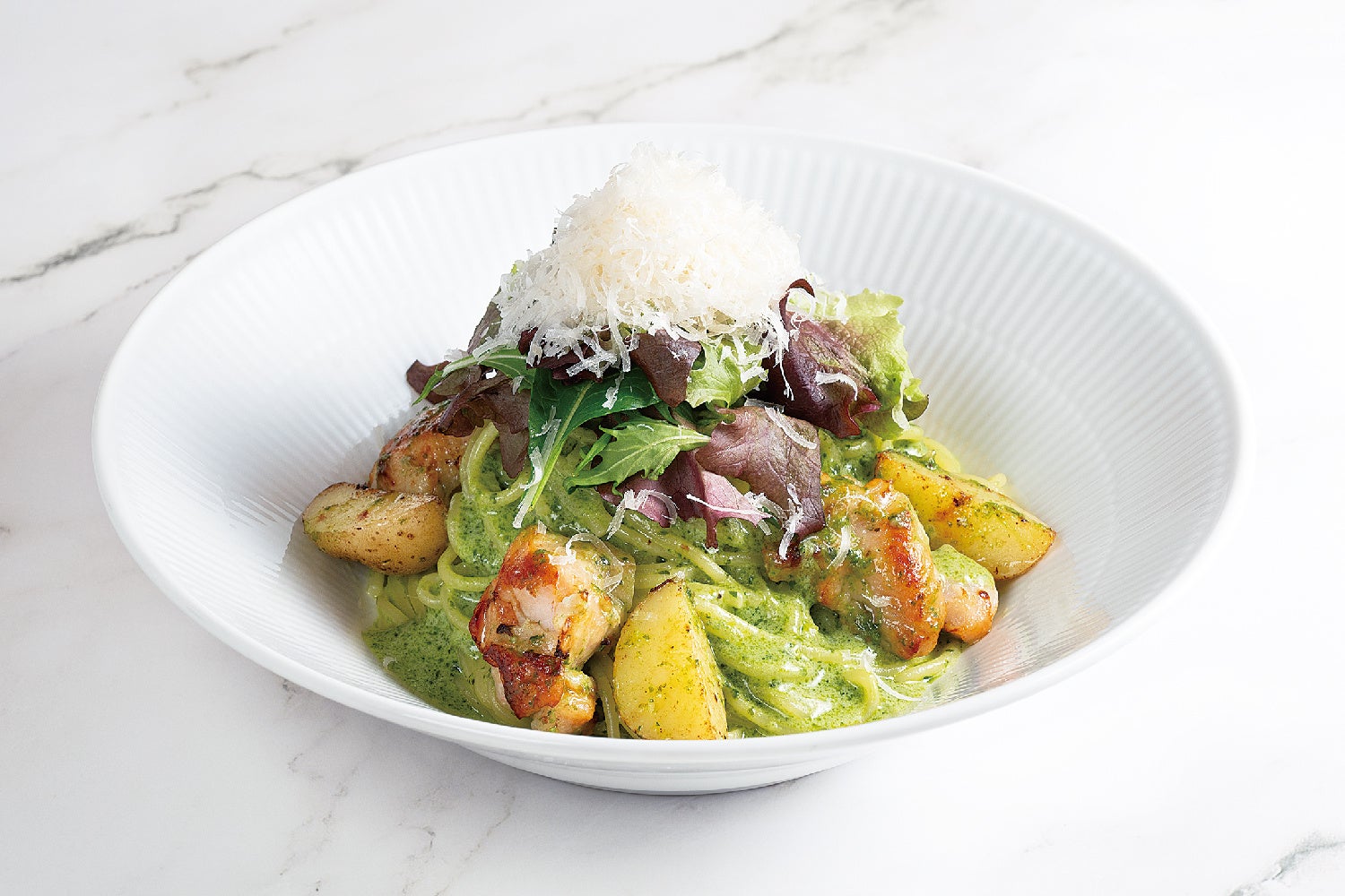 ◆新じゃがいもとローストチキンのバジルクリーム 1,680円(税込)〜