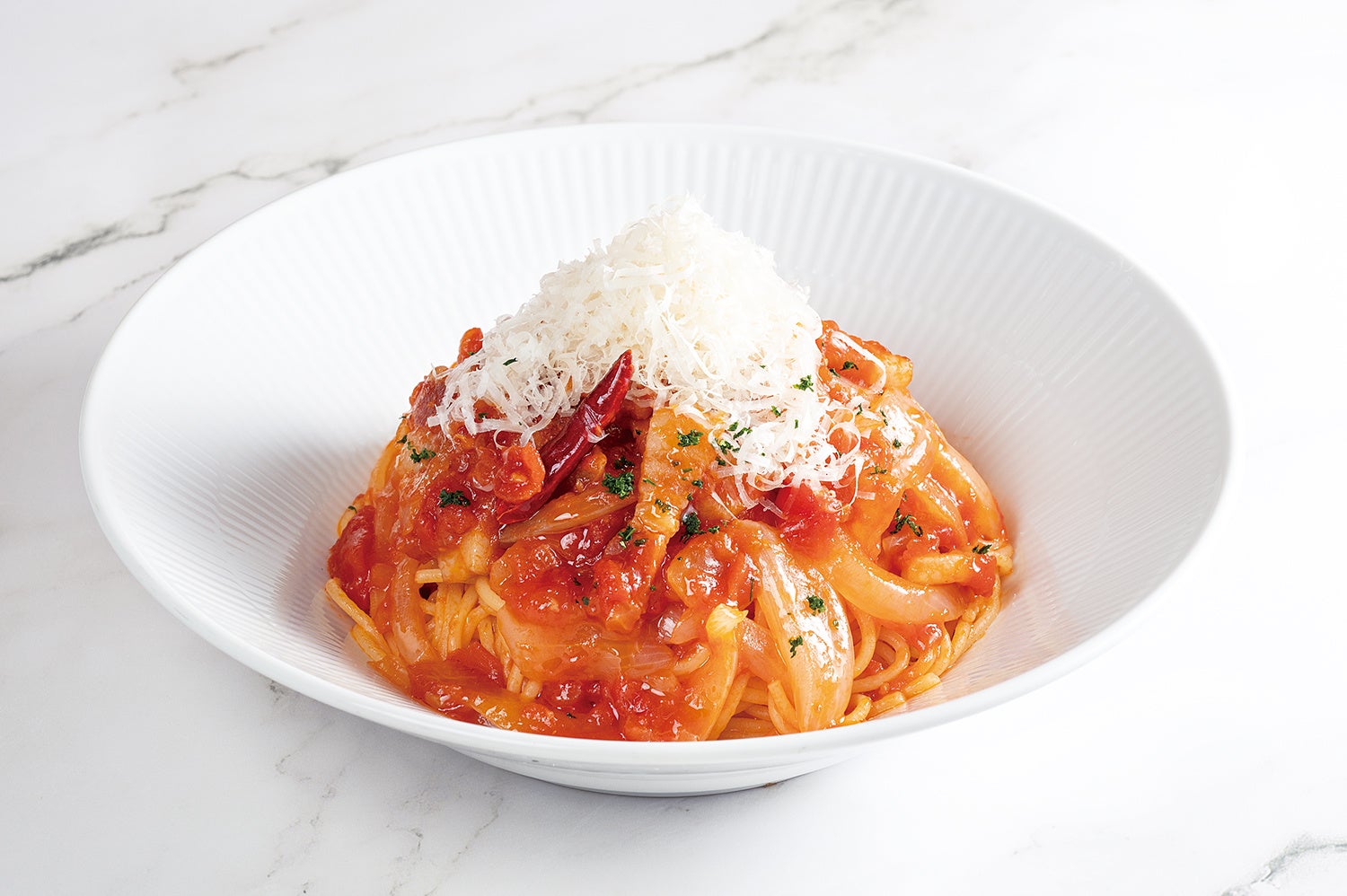 みずみずしい玉ねぎと旨みを十分に引き出したイベリコベーコンは完熟トマトソースと相性抜群。