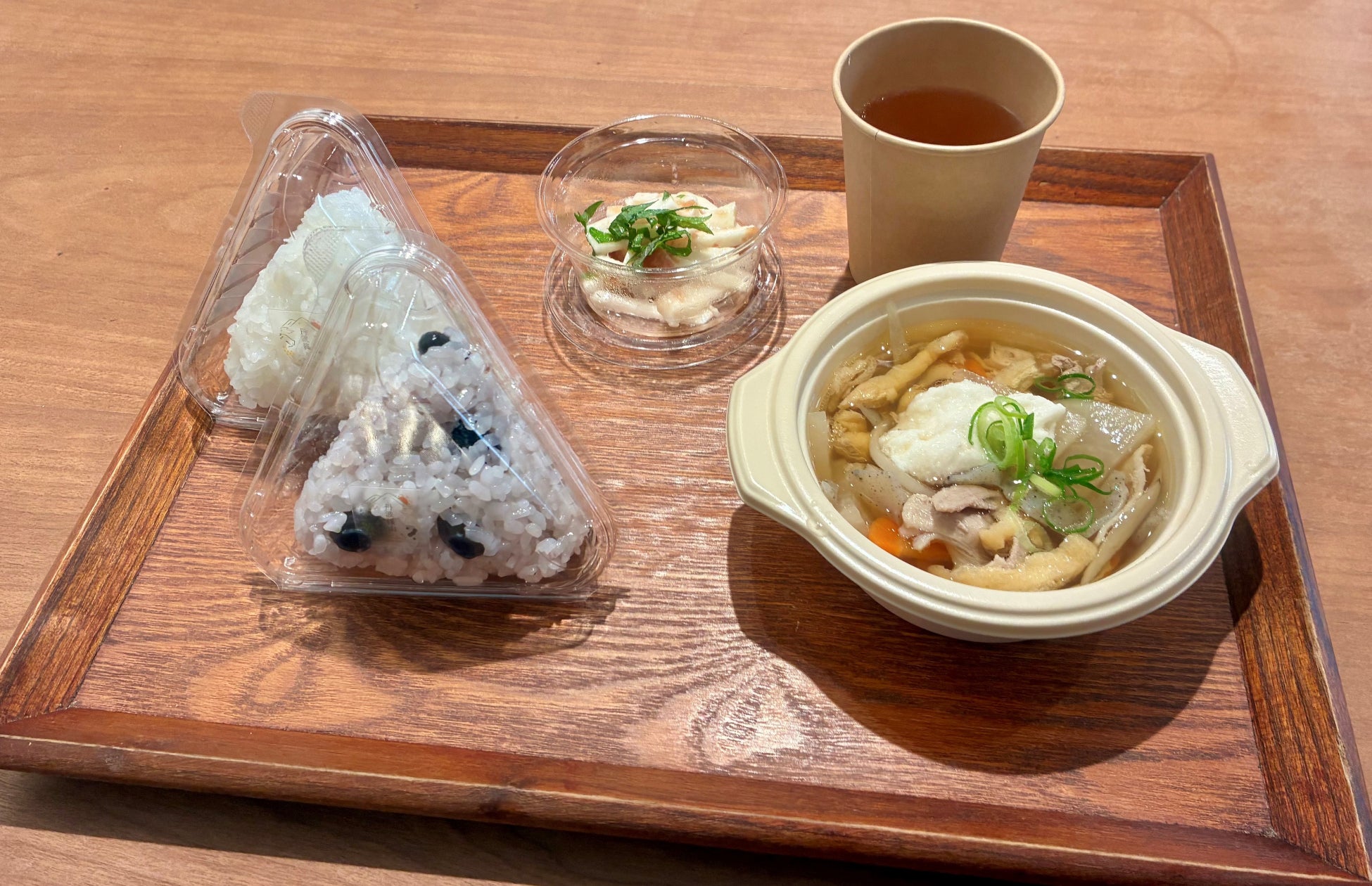 (黒豆おにぎり+霧芋の雲海汁+山の芋の梅和え+塩おにぎり)