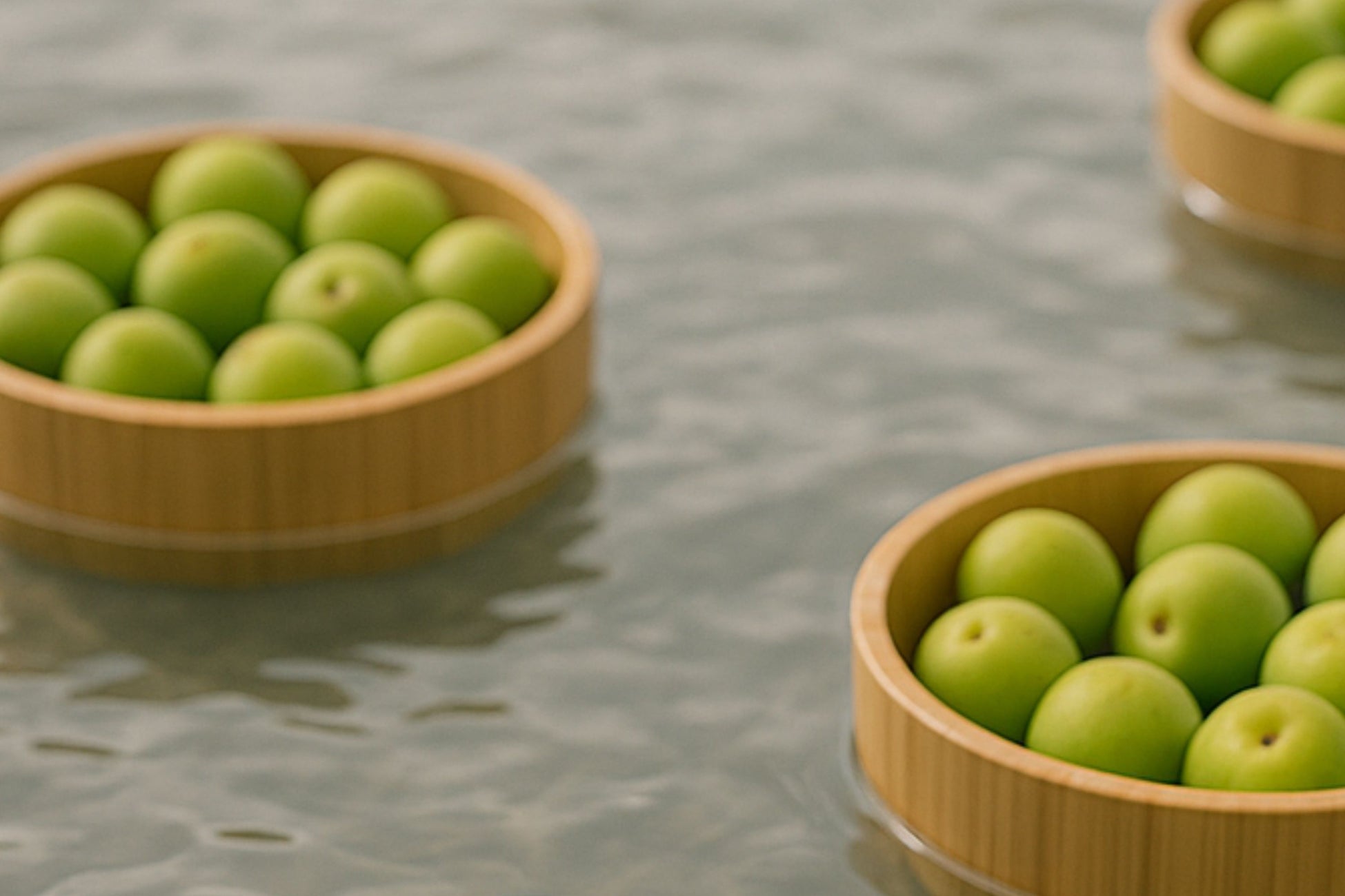 使用する梅は、JA尾張中央様と連携し、規格外などの理由で行き場を失っていた小牧市産の青梅。私たちはこの梅に新たな命を吹き込み、五感で楽しめる癒しの空間を演出します。