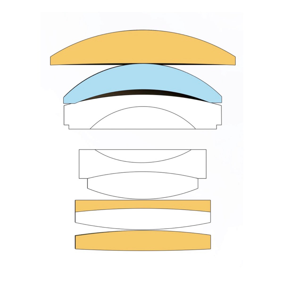 レンズ構成:6群8枚(ランタニドガラス4枚、高屈折レンズ1枚含む)