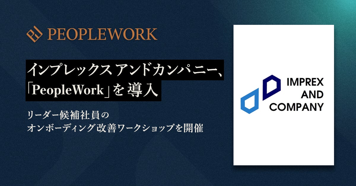 エンプロイーサクセス事業を推進する株式会社PeopleX(本社:東京都渋谷区、 代表取締役CEO:橘 大地、以下:当社)は、当社が提供するエンプロイーサクセスHRプラットフォーム「PeopleWork」が、インプレックスアンドカンパニー株式会社(東京都港区、代表取締役社長:伊藤 勝成、以下「インプレックスアンドカンパニー」)へ導入されたことをお知らせいたします。本導入に合わせて、人事・事業部が連携して理想のオンボーディング体験構築を目指す「リーダー候補社員オンボーディングワークショップ」を開催いたしました。