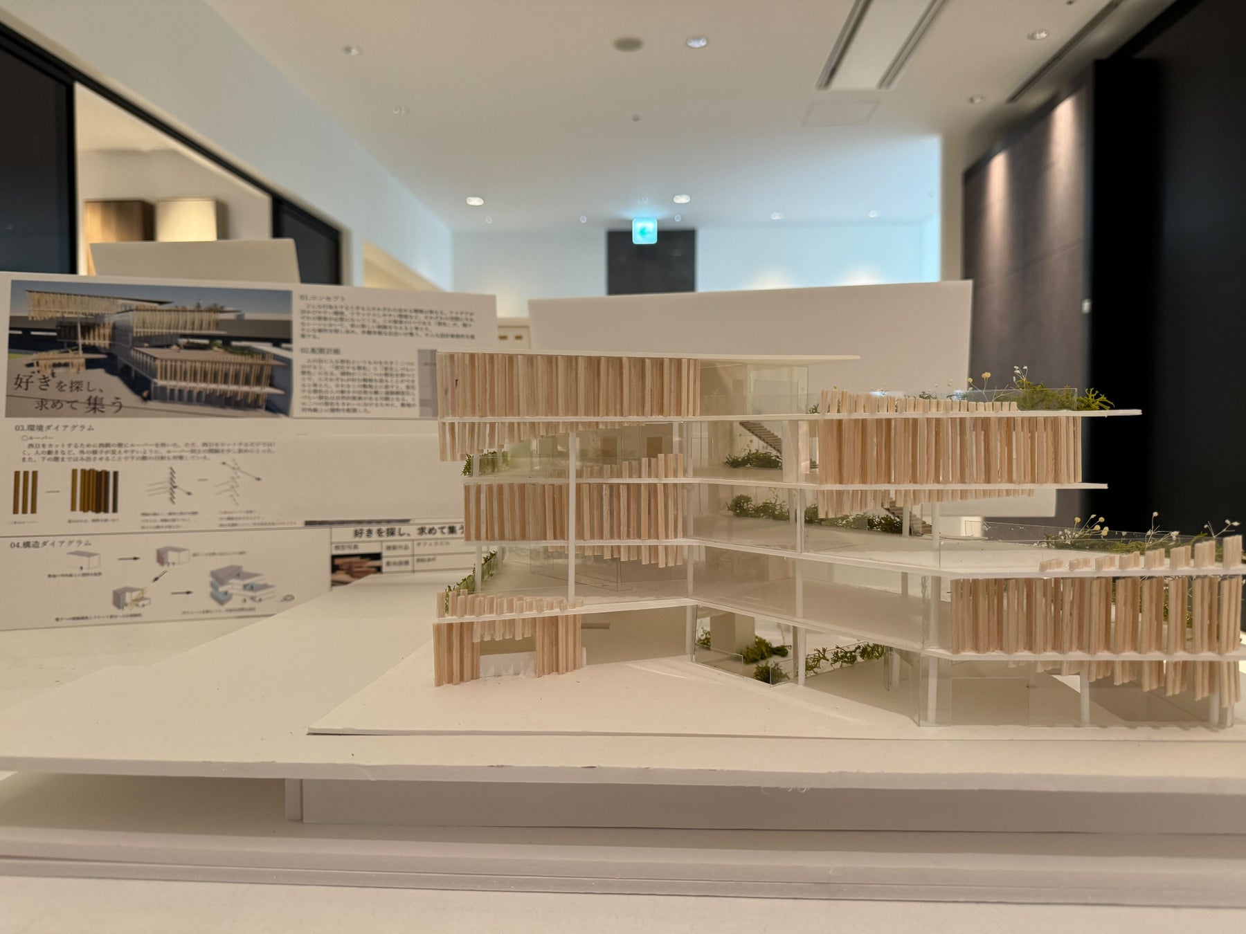 昨年の展示会では、サブスタッフとして参加しましたが、今年は代表を務めることになりました。昨年の展示作品は全て有志によって行われていましたが、今年は2年生の授業(最終講評会)にも足を運び、作品を鑑賞した上で展示候補品を選定しました。模型の美しさはもちろんですが、外観が印象的なものを基準に展示品を選びました。