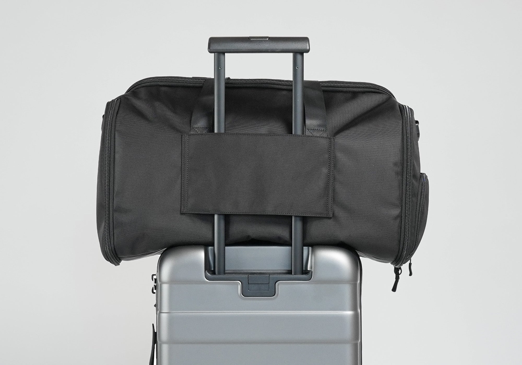 手持ち用ハンドルと肩掛け用ストラップに加え、スーツケーススリーブを使えば、キャリーケースのハンドルに固定して身軽に移動可能。「手持ち」「肩掛け」「キャリーケース固定」の3つのスタイルで、旅の機動力を大幅に向上させます。