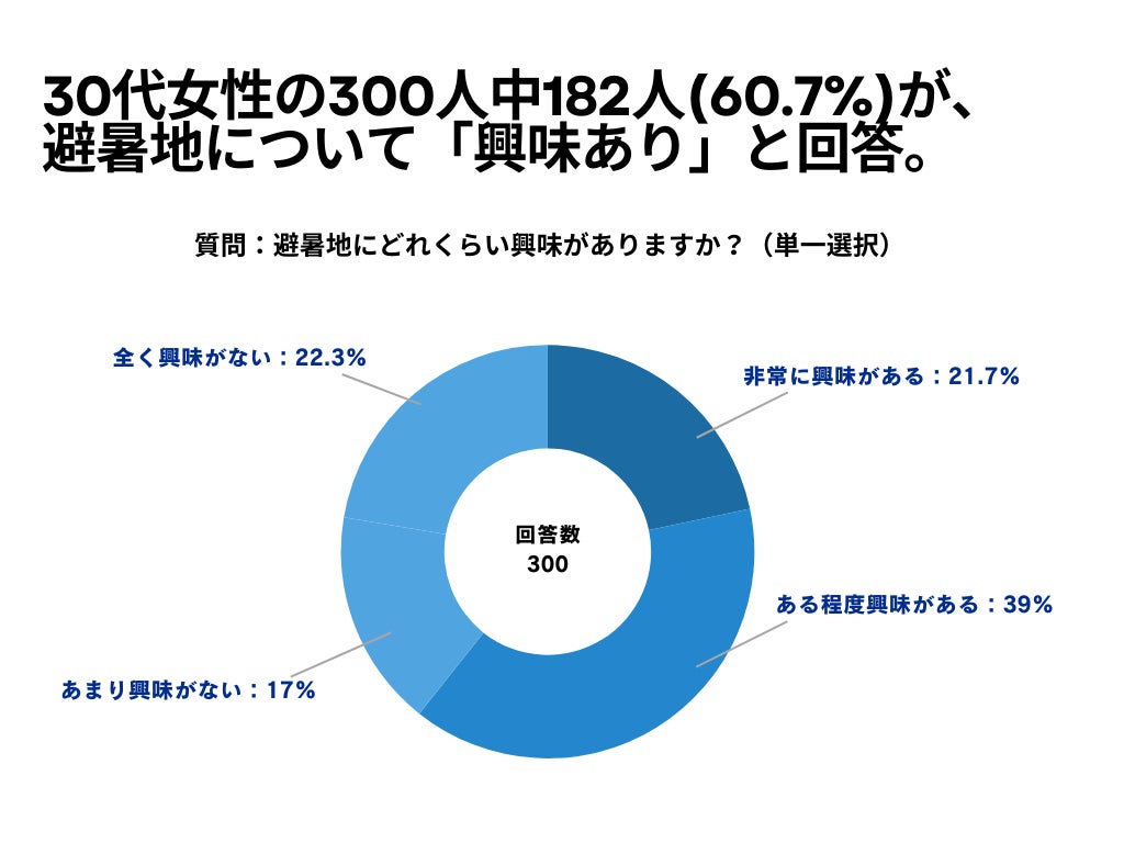30代女性の300人中182人(60.7%)が、避暑地について「興味あり」と回答【避暑地に関するアンケート】