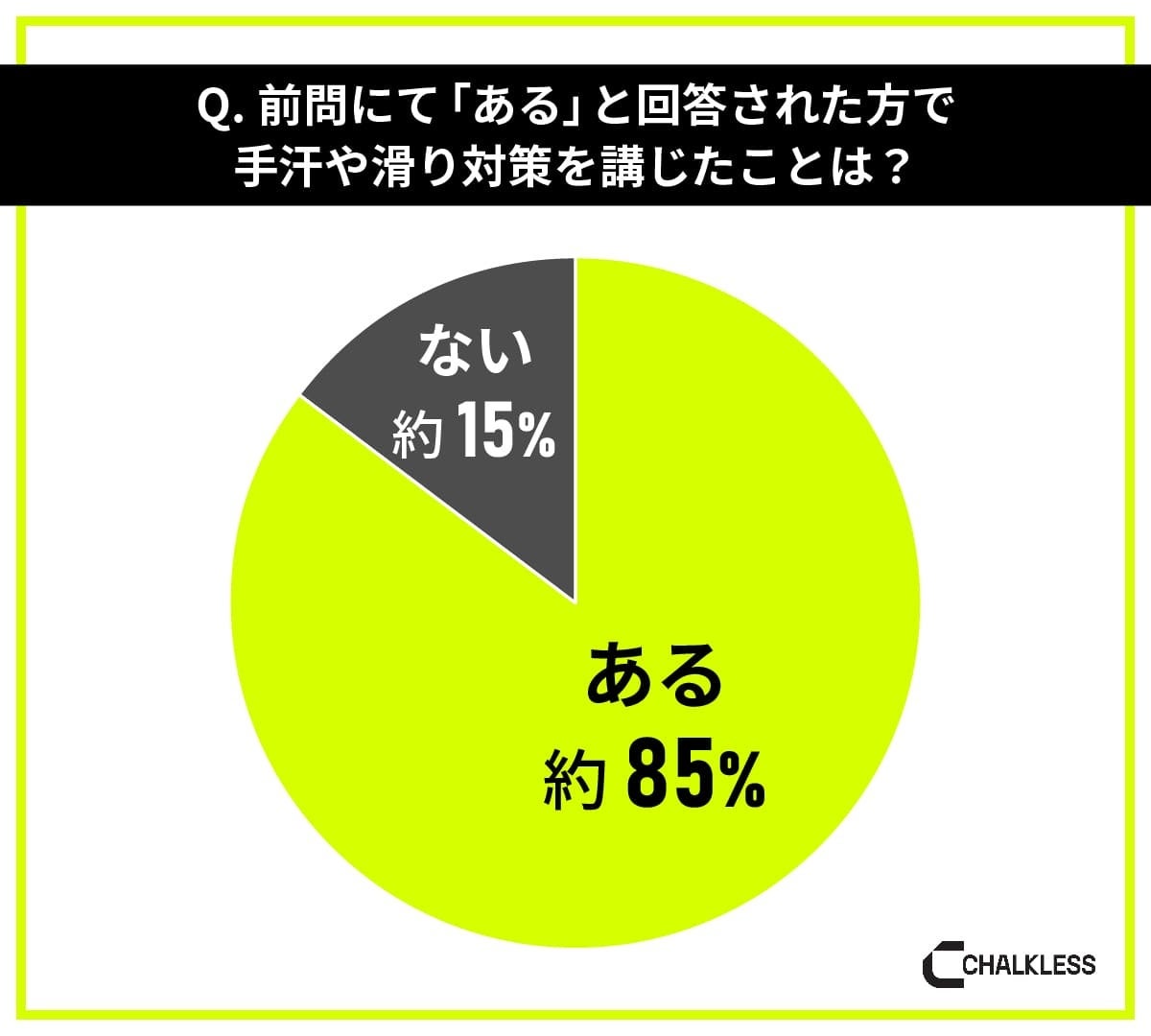 結果は下記のとおりでした。手袋・グローブなどの滑り止めを使用している人が多く、その他液体チョークやスプレー、滑り止めテープやテーピングを使用している人もいました。