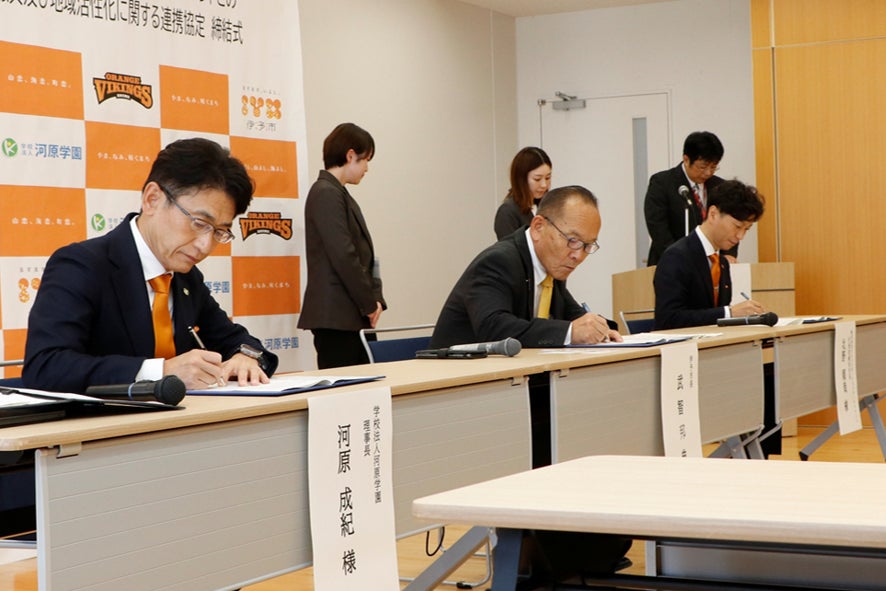 愛媛県伊予市は、学校法人河原学園及び株式会社エヒメスポーツエンターテイメントと『伊予市中山地域におけるスポーツ振興及び地域活性化に関する連携協定』を締結し、三者の連携により地域活性化を推進します。