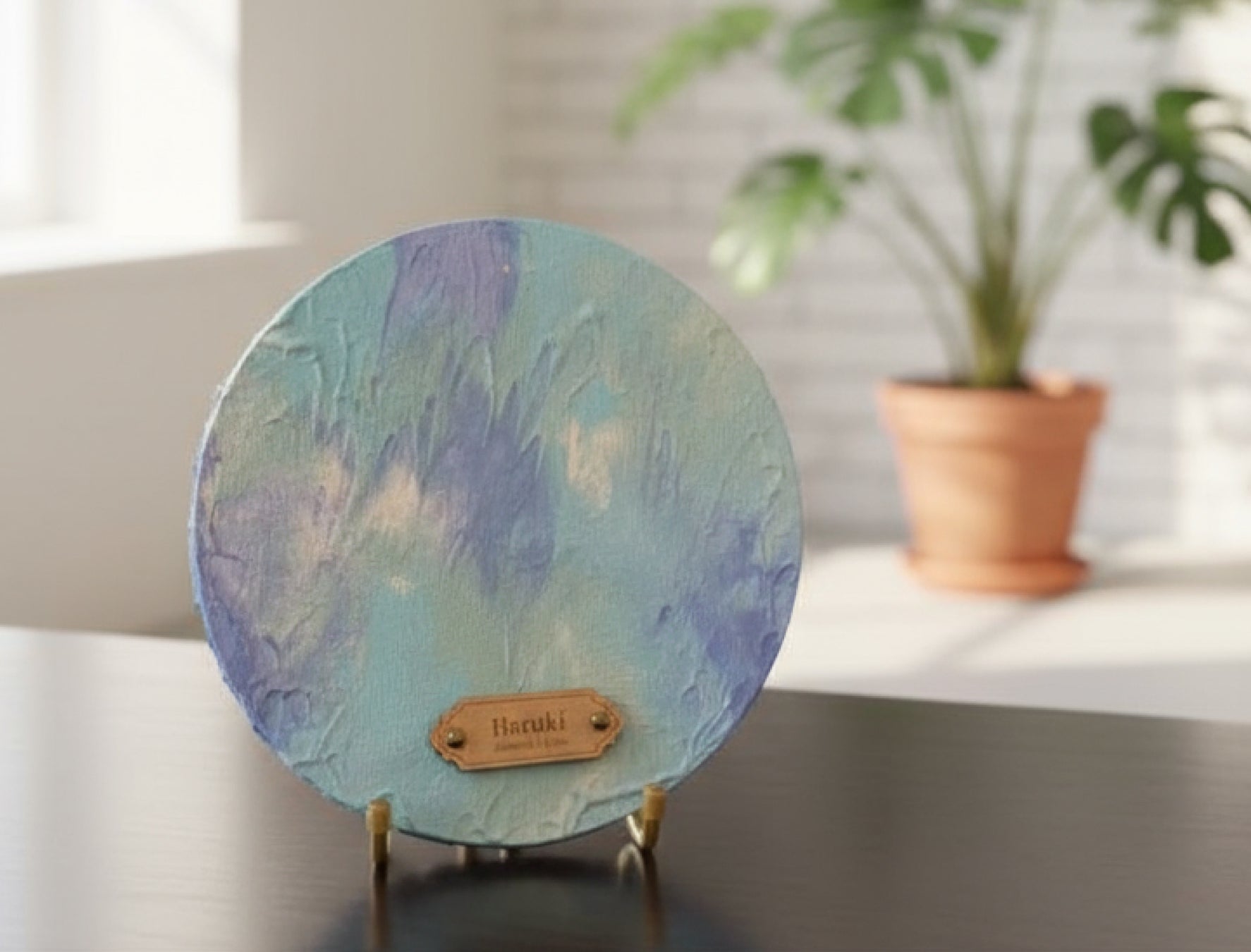 ・仕上がった丸キャンバスは、記念にそのままお部屋にも飾れる