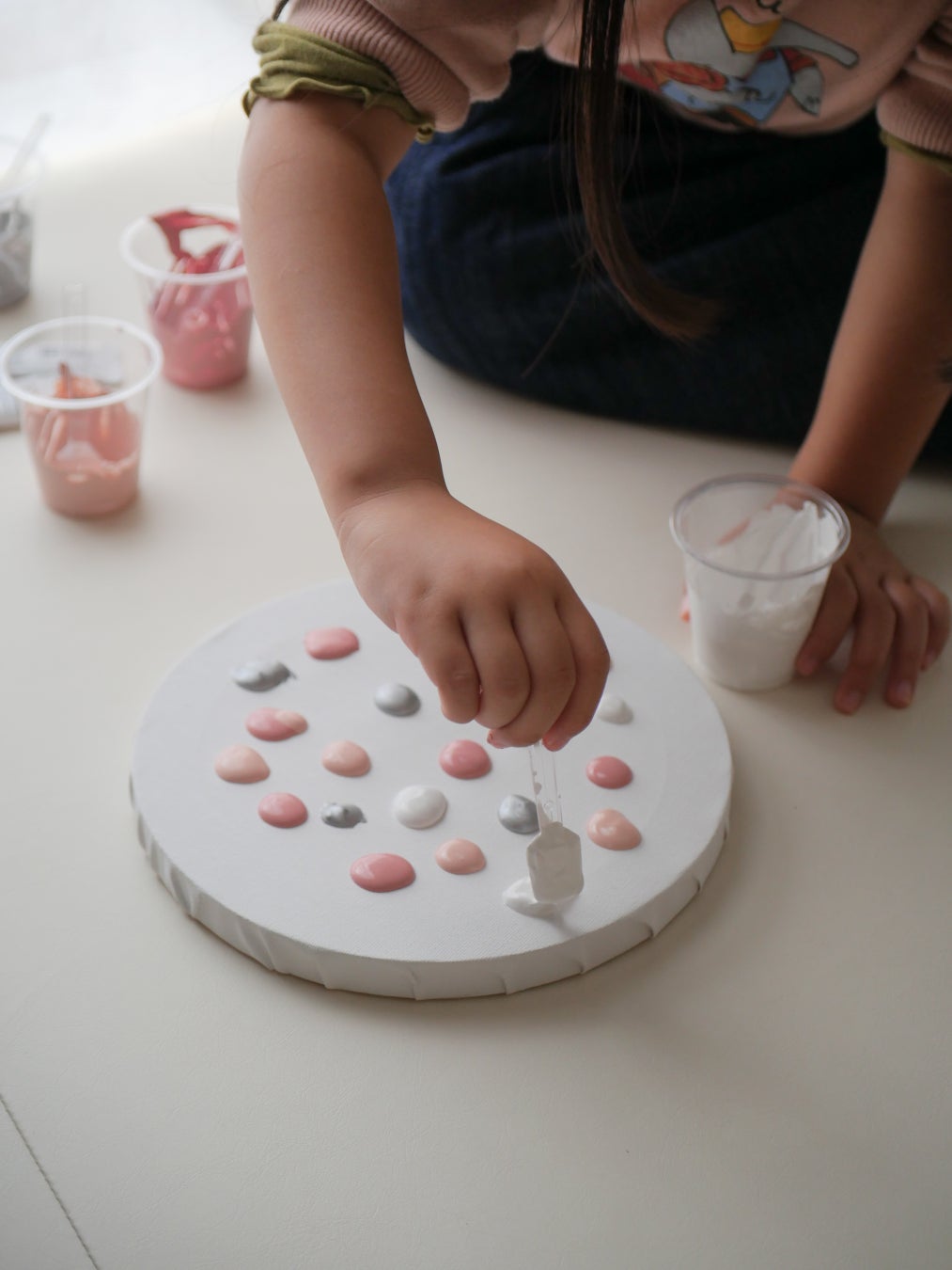 赤ちゃんの自由なタッチも可愛く見える特別な円形キャンバス。