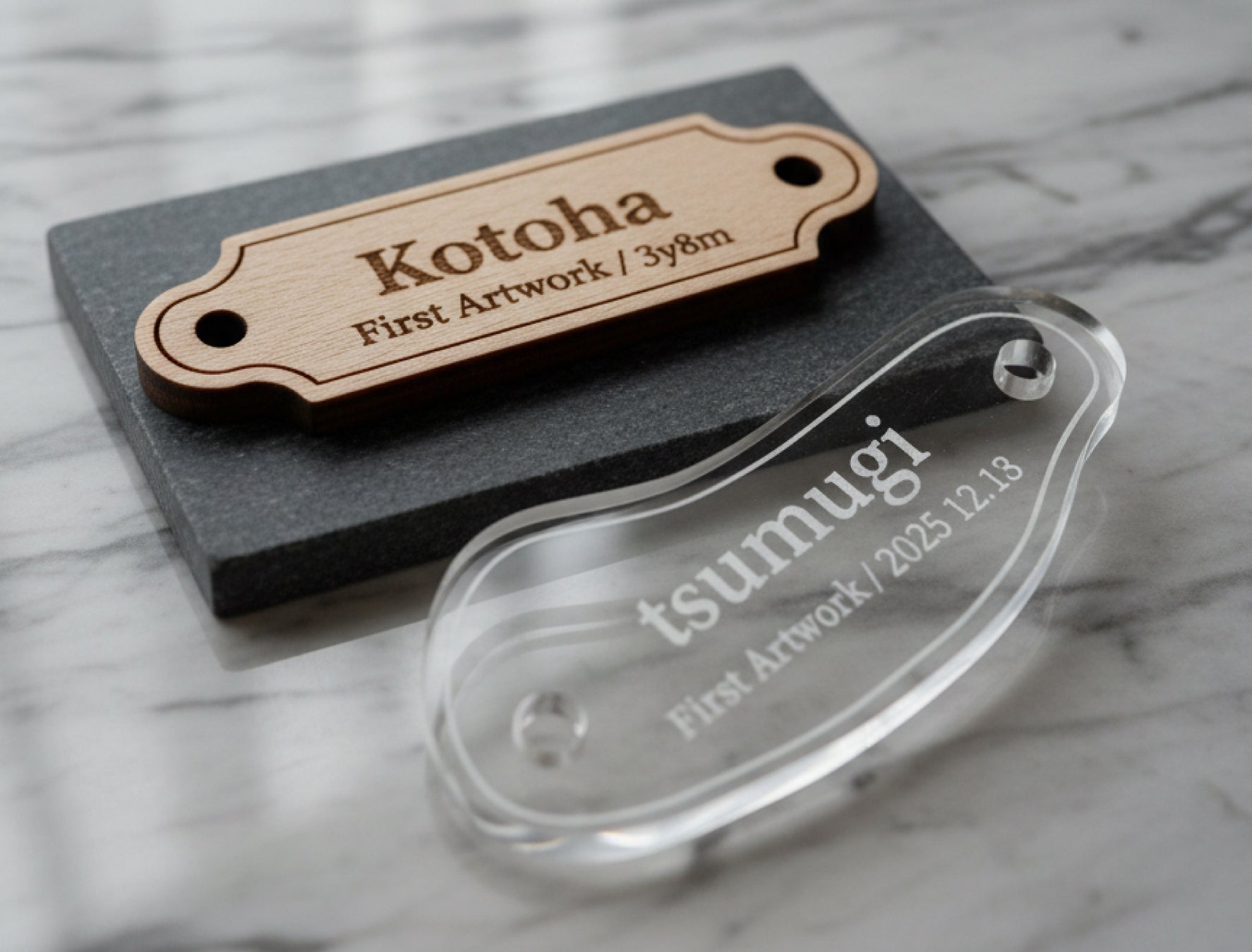 記念に残せる!名前・日付を刻む オリジナル名入れプレート をセット。