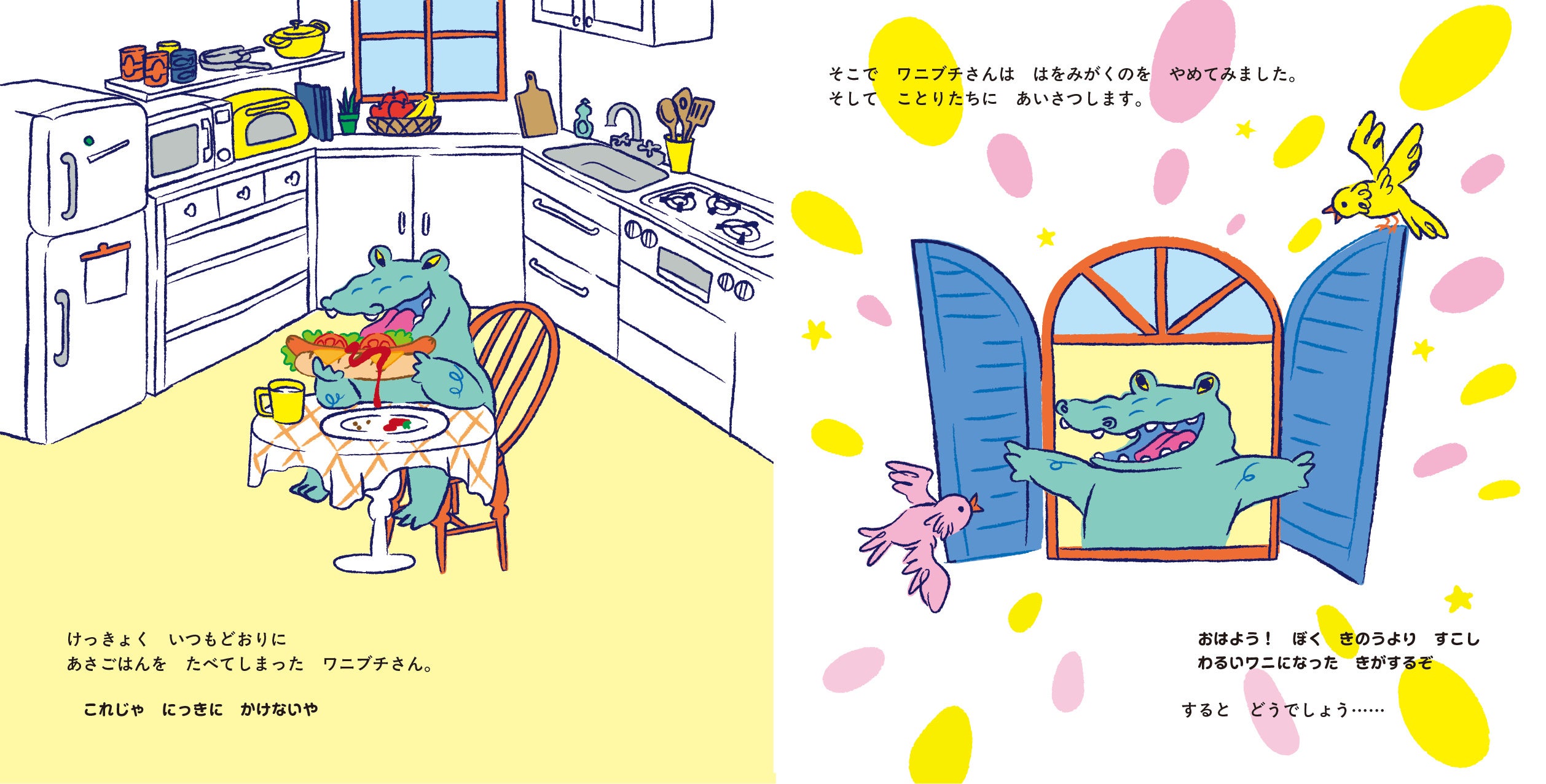 この絵本はワニブチさんのトライアル & エラーの物語です。