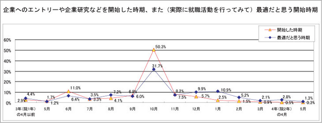 ■ 就職活動を経験したうえで最適だと思う就職活動開始時期は「大学3年(院1年)の10月」が3割超