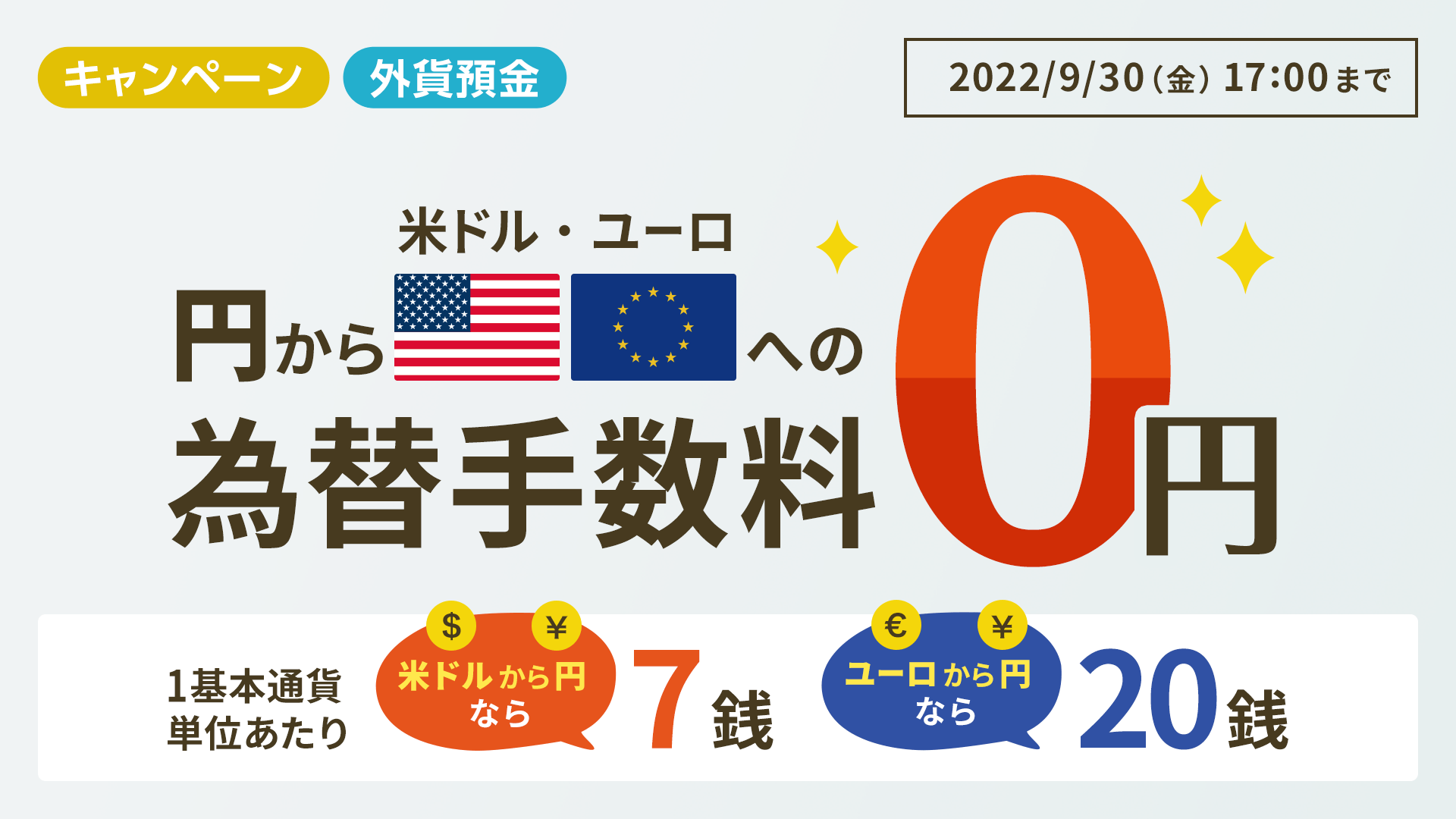 円から米ドル・ユーロの為替手数料0円!為替手数料引き下げキャンペーンについて