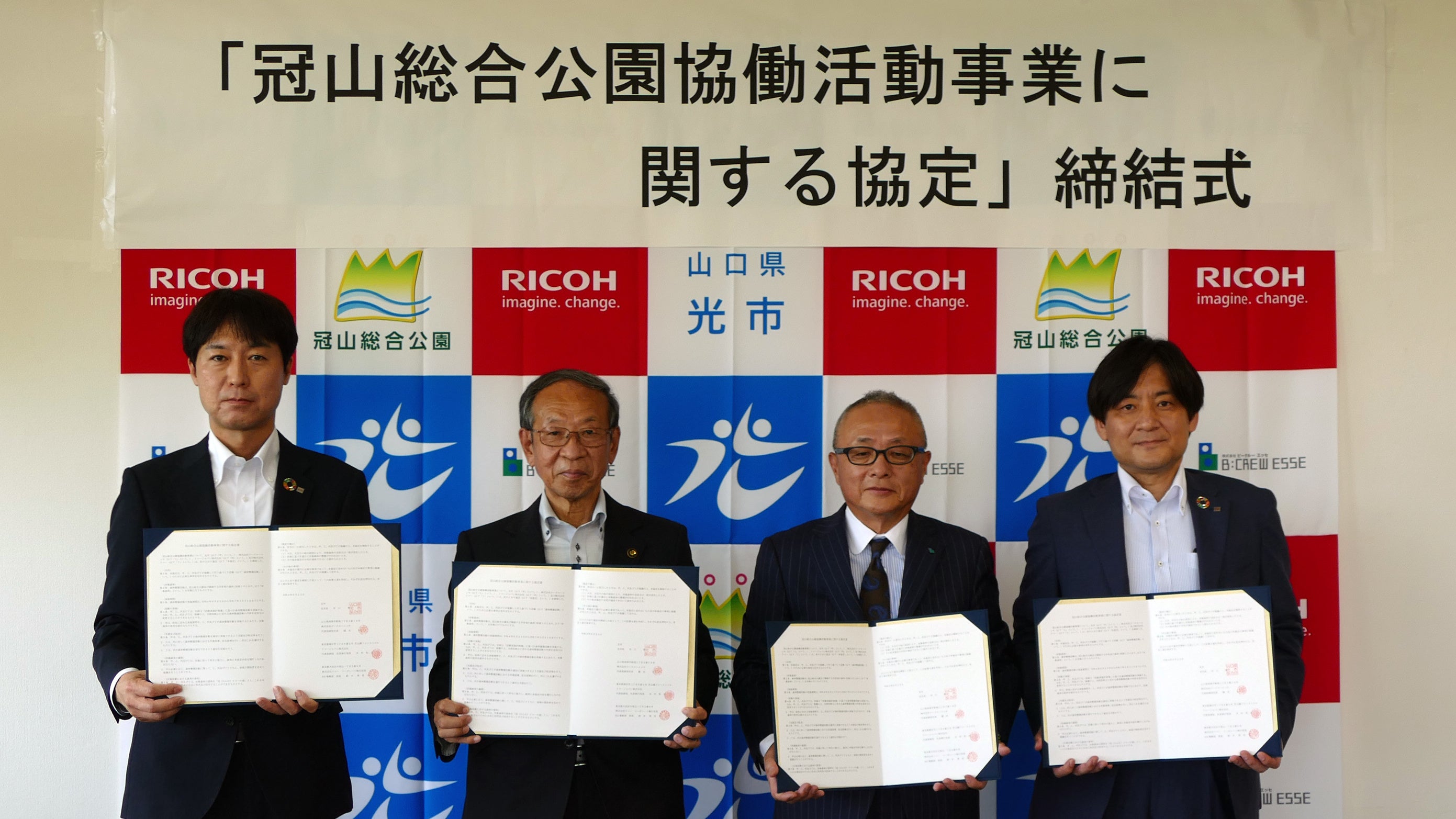 リコーとリコージャパン、山口県光市、株式会社ビークルーエッセと冠山総合公園協働活動事業に関する協定を締結