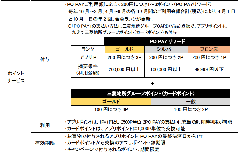 これにより「PO PAY」に三菱地所グループCARD(Visa)を登録した場合、同カードの三菱地所グループポイント(2%)と「PO PAYリワード」によるアプリポイント(最大1.5%)の合計最大3.5%のポイント還元を受けることができるものです。