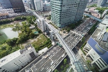 浜松町駅西側から賑わいを分断していた鉄道高架と首都高速道路高架上に歩行者動線を形成し、賑わいのボトルネックを解消し、安全で安心な歩行者空間を創出しました。また、従前の地上レベルの歩行者動線では感じることができなかった地区の様々な魅力を体験する都市景観体験を創出しています。