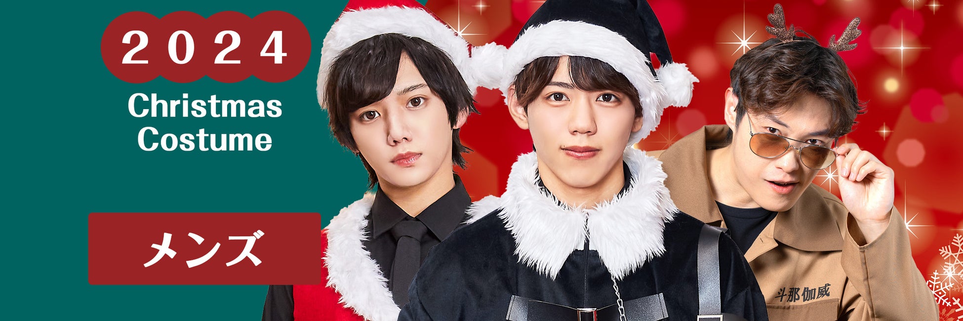 「クラシックなサンタクロース衣装から、ユーモアたっぷりのデザインまで、男性向けコスチュームが充実!」