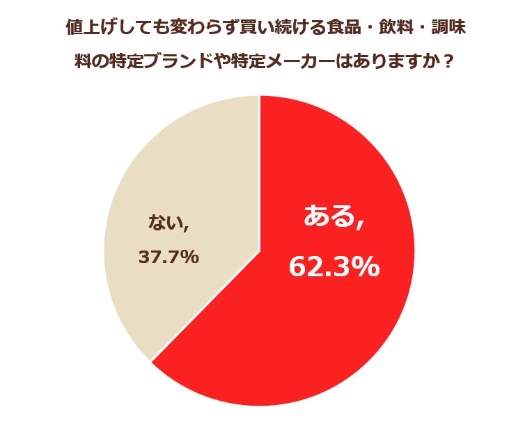 - 62%は値上がりしても買い続ける食品が「ある」と回答。値上げに負けない強い購買理由は、使い続けて慣れ親しんだ美味しさや安心・信頼感。