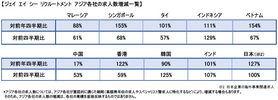 - 求人数は、マレーシア、中国、韓国を除く7つの国と地域で、前年同期を上回る