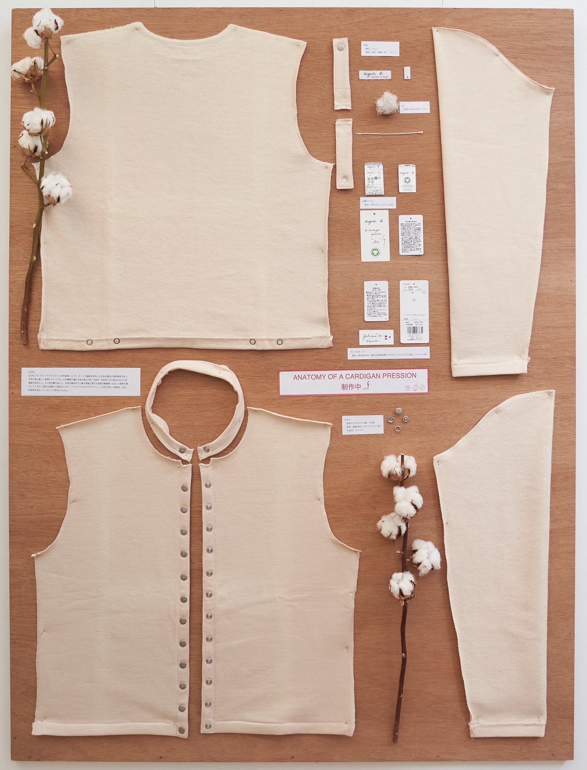 そのほか青山店では、アニエスベーのアイコニックなカーディガンプレッションの、オーガニックコットンを使用したモデルの「解体図」を展示します。