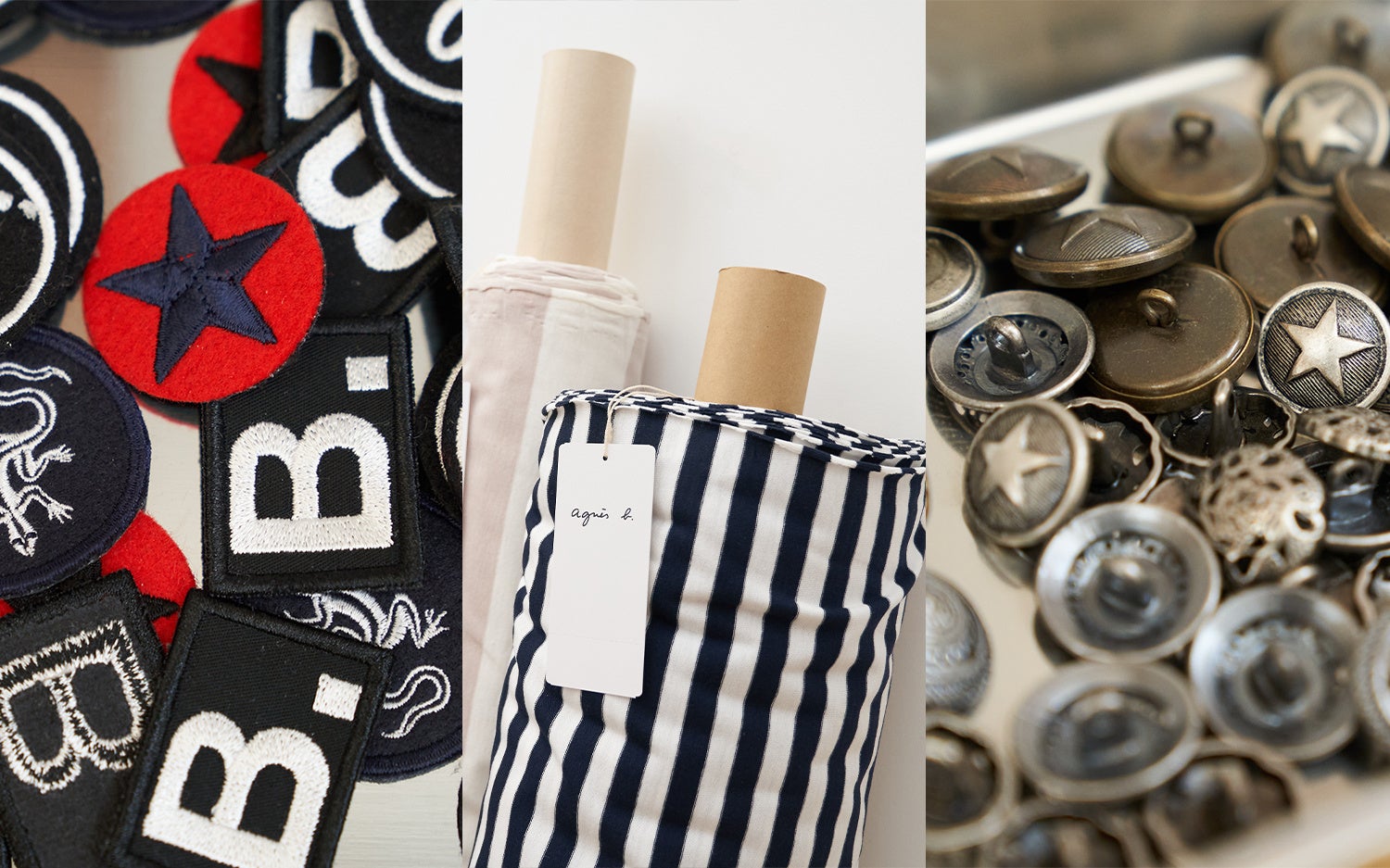 また、カウンターではアニエスベーのアーカイブ生地や、ボタン、ワッペンをご購入いただけます。(お持ち帰り専用、返品・交換不可)