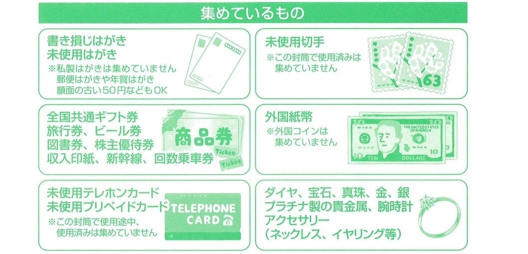 ~使用済み切手や金券、外国紙幣、アクセサリーなども併せて回収中~