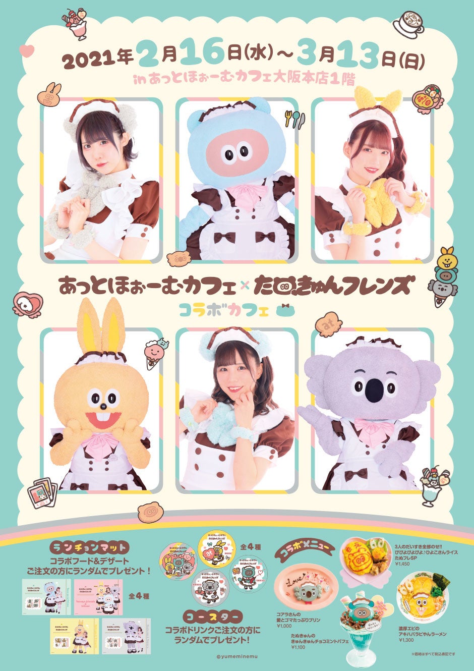 あっとほぉーむカフェ大阪本店×たぬきゅんフレンズ コラボカフェが2022年2月16日より開催!