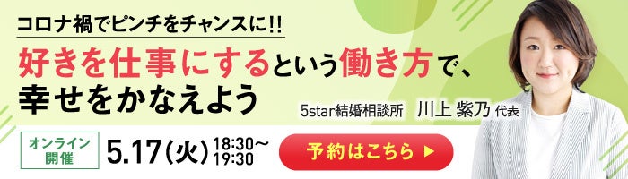 【5月17日開催】結婚相談所開業・副業を検討の方向けオンラインセミナー!『主婦から開業!!好きを仕事にするという働き方で、幸せをかなえよう!!』
