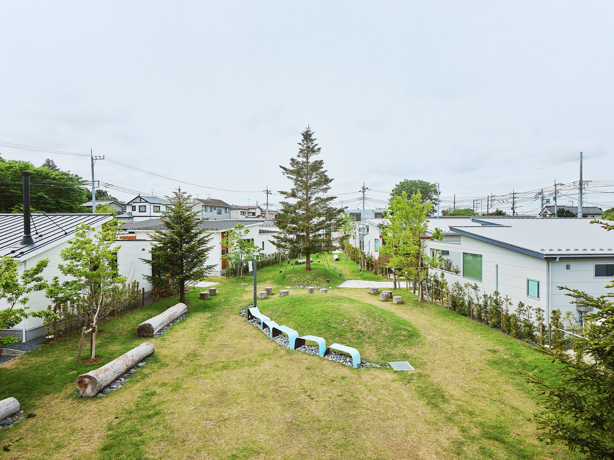 51世帯という比較的大規模な住宅地開発である。通常は市場原理から前例主義の住宅地がつくられてしまうが、このプロジェクトでは200㎡規模の宅地+平屋建てという非常にユニークな初期設定がされる。その初期設定自体ですでに社会的なアクションになっているが、このプロジェクトでは、通過交通を減らすT字のクルドサック(行き止まり道路)歩行者ネットワーク、ゴミステーション、街区中央への公園の配置と公園に隣接した集会所と、良質な住宅地をデザインしていく。そのことによって、空が広い房総半島の暮らしという地域の文化を空間の問題としてきちんと言語化することに成功している。